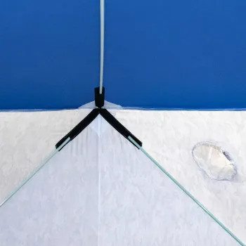 Зимняя палатка «Следопыт «Куб» обеспечивает комфорт на рыбалке в зимнее время года. Благодаря системе крепления дуг «хабы» палатки очень быстро переводятся из транспортного положения в рабочее состояние. «Хаб» выполнен из морозостойкого, ударопрочного материала - нейлона (полиамида). Установить палатку можно в течение одной минуты даже одному человеку. Каркас изготовлен из прочного стеклопластикового гладкого прутка d 10 мм. Данная конструкция обеспечивает легкое раскрытие, устойчивость палатки в собранном виде при порывистом ветре. Это позволяет увеличить износостойкость каркаса, даже без использования растяжек. Палатка выполнена из ткани Oxford 210D PU1000, что обеспечивает долговечность, непродуваемость и влагонепроницаемость конструкции. Внутри палатки предусмотрены карманы для хранения рыболовных мелочей. Для хорошего освещения внутреннего пространства в палатку встроены съёмные окна из прозрачной пленки ПВХ 500мк. От снега и солнца на окнах присутствуют внешние козырьки и внутренние откидные шторки.