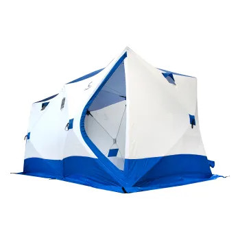 Палатка зимняя куб СЛЕДОПЫТ 3,8х1,9 м 2-х комнатная S по полу 7,2 кв.м 3 слоя цв. синий/белый