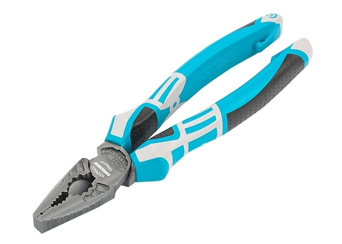 Плоскогубцы имеют дополнительные внутренние грани и могут использоваться как гаечный ключ М8 до М10 / Ø 11-17 мм. Режущие кромки закалены индукционными токами. Смещение шарнира к режущим кромкам увеличивает эффективность реза на 20%. Эргономичная форма рукояток позволяет придать руке оптимальное положение, что снижает усталость и травматизм при длительной работе. Трехкомпонентные рукоятки выполнены из сочетания пластика и резины. Ребра жесткости на внешних металлических частях инструмента делают конструкцию более прочной. Инструмент имеет специальное антикоррозийное покрытие «титан-финиш». Нижняя часть рукояток оснащена дополнительными упорами, на которые можно установить пружину для авторазжима или скобу с подвесом, что расширит функции инструмента.
