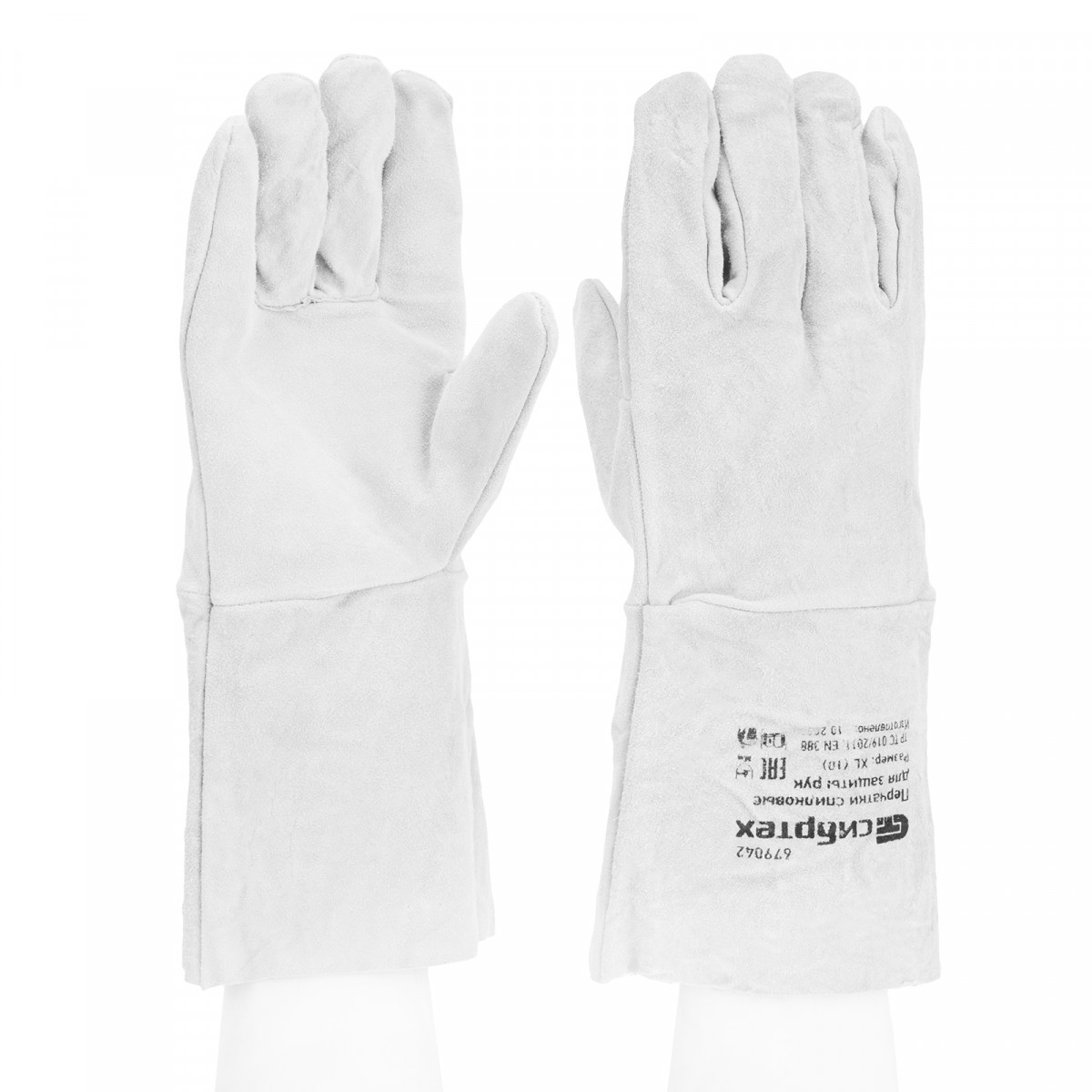 Перчатки спилковые с манжетой для садовых и строительных работ, размер XL, Сибртех