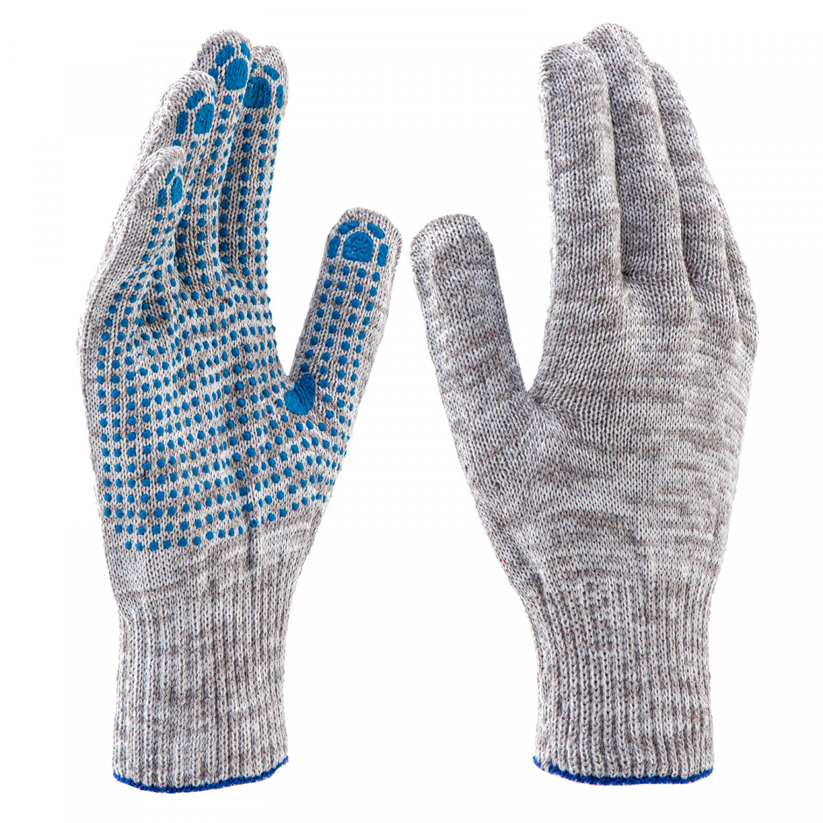 Перчатки трикотажные х/б ПВХ точка серый меланж 6 нитей 10 класс СИБРТЕХ