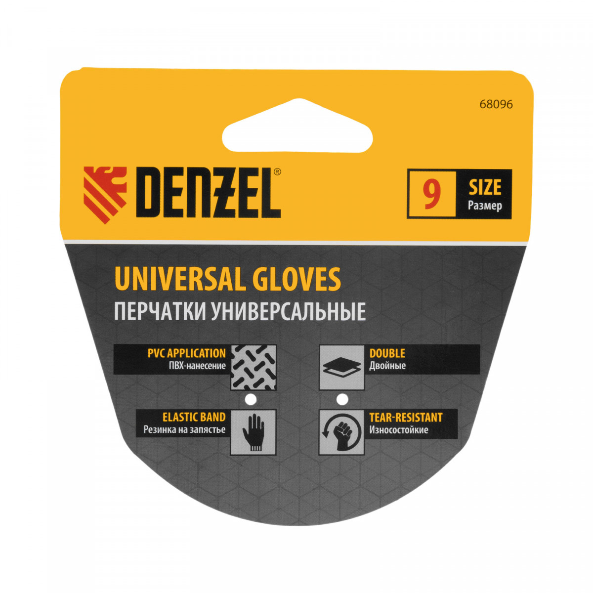 Перчатки универсальные, двойные, ПВХ нанесение, размер 9 Denzel