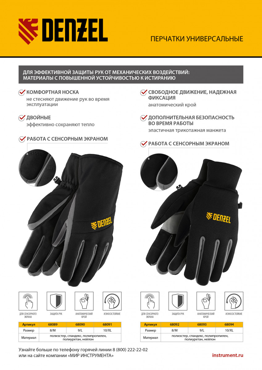 "Перчатки Denzel обеспечивают удобство при работе с сенсорным экраном благодаря специальным накладкам на пальцах."