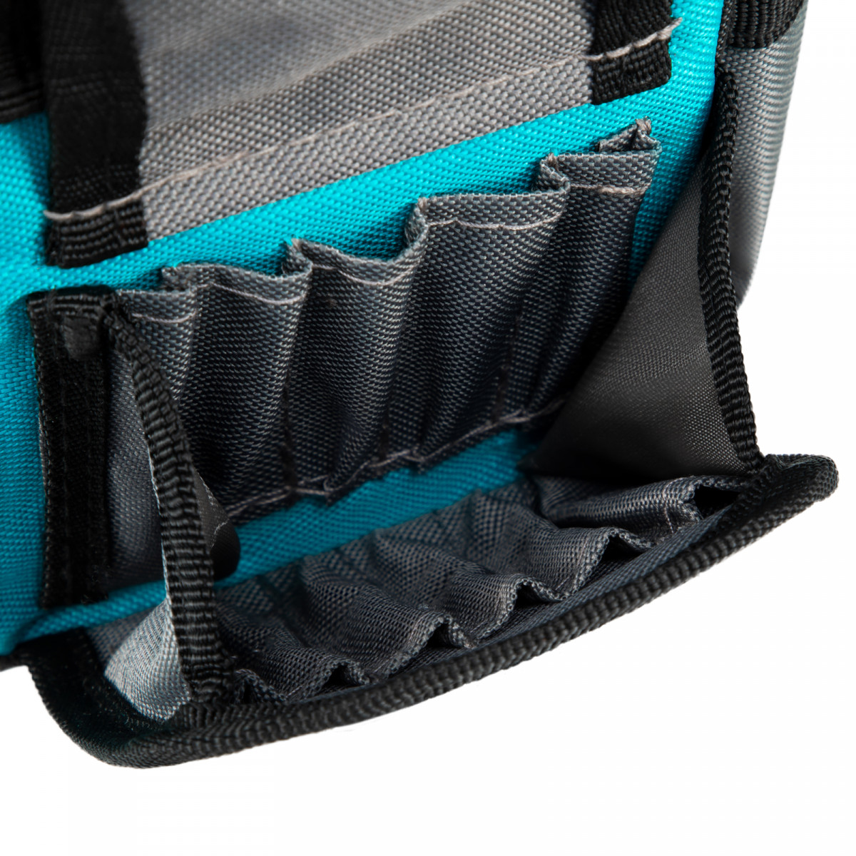 - Дополнительные возможности — в переноске предусмотрен отдельный карман для ножовки, а также зацеп для рулетки.