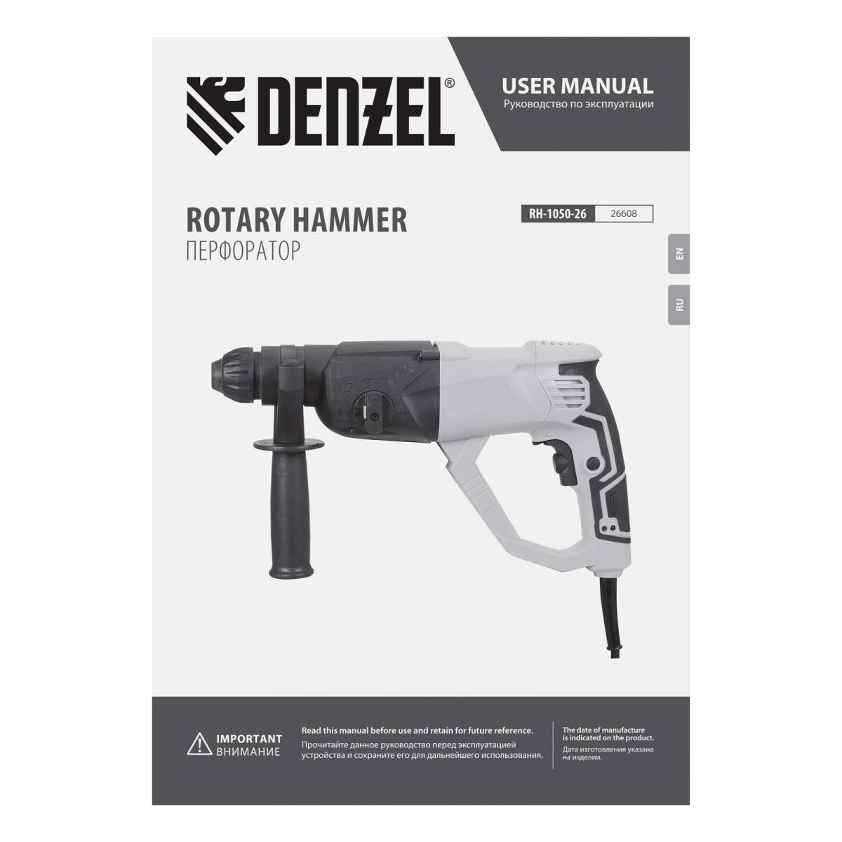 Перфоратор электрический RH-1050-26, SDS-plus, 1050 Вт, 3.2 Дж, 3 плюс 1 режим Denzel