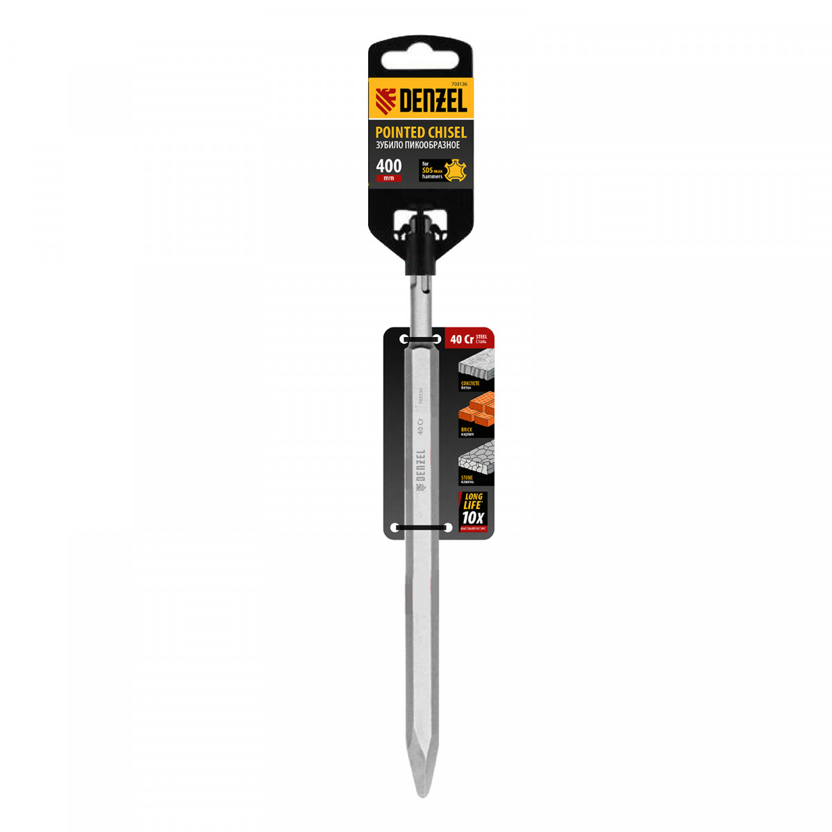 Пика Denzel 703136 размером 18 x 400 мм изготовлена из стали 40Cr и предназначена для установки в патрон под хвостовик SDS-max. Используется совместно с перфоратором для проведения ударных работ. Оптимальна для разрушения кирпичных, бетонных и каменных конструкций. Оснастка будет полезна на строительной площадке.
