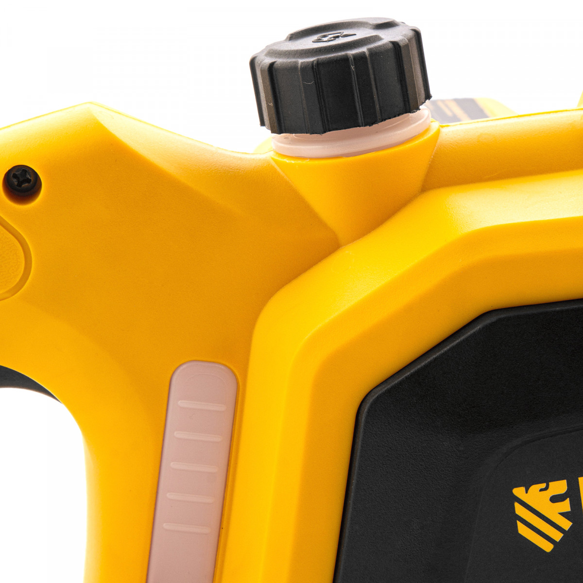 - Цепной тормоз — двигатель отключается, если пила резко отскакивает назад. Так обеспечивается защита от контакта с цепью и получения травм.