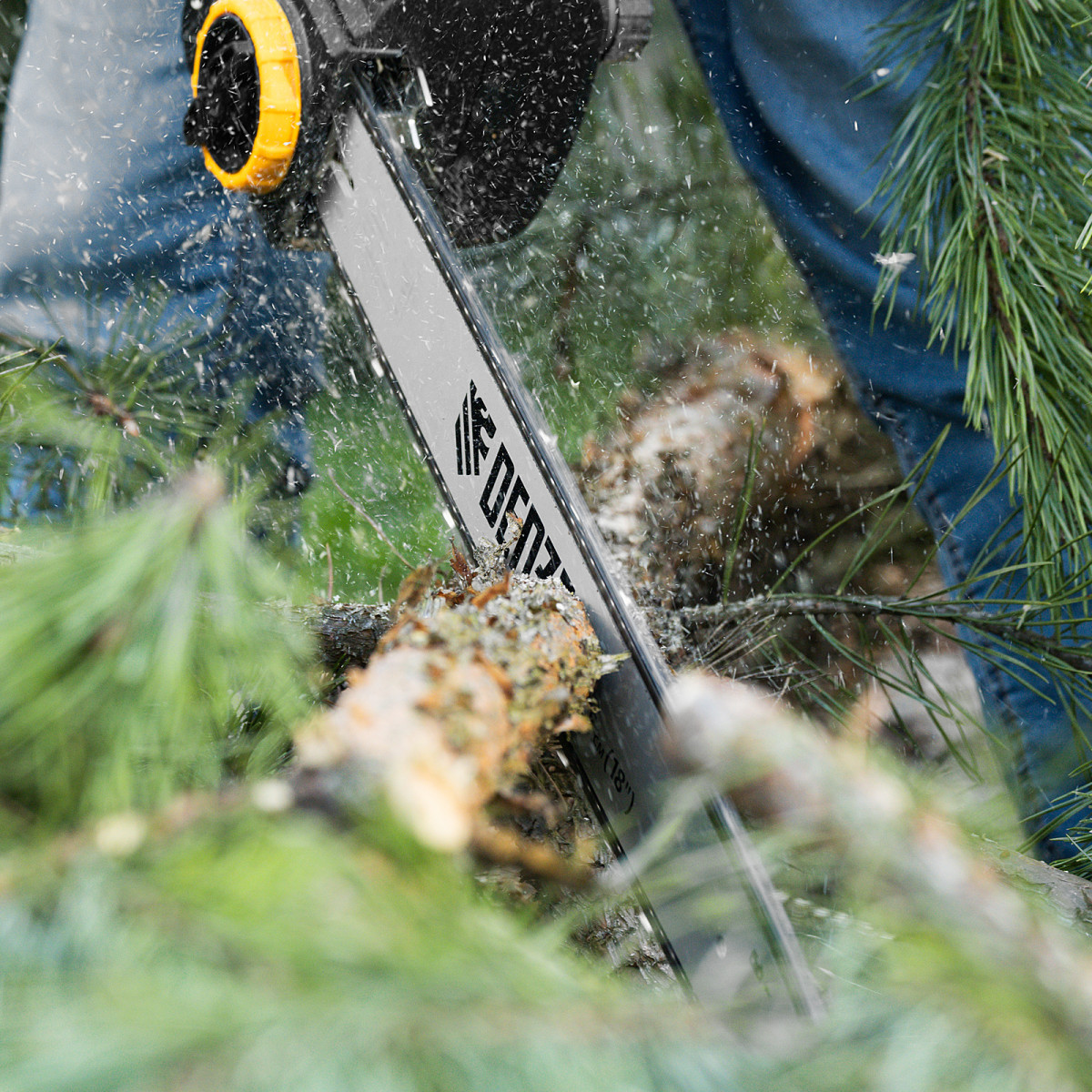 - Оптимальная балансировка — пила с продольным расположением двигателя удобна для выполнения ровных и чистых надпилов, а также для работы в ограниченном пространстве.