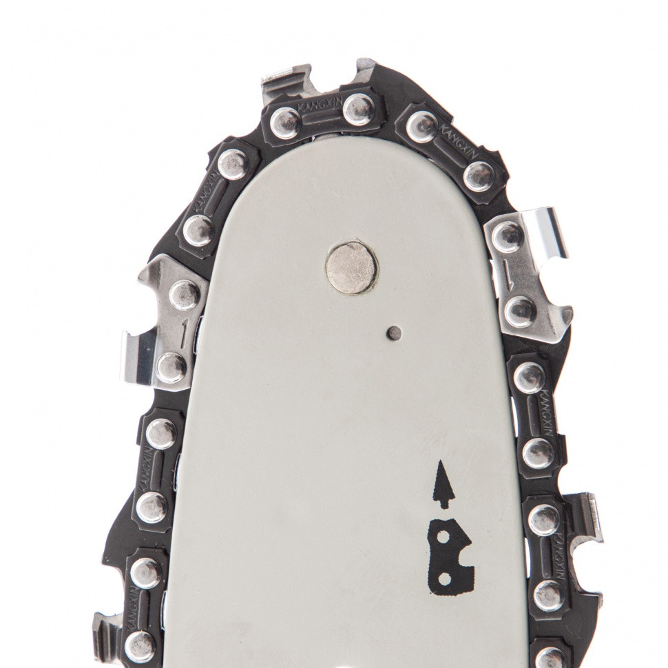 - Безопасная эксплуатация — блокировка пуска предотвращает случайное включение пилы, инерционный тормоз цепи мгновенно останавливает ее вращение при резком отскоке инструмента в сторону пользователя.