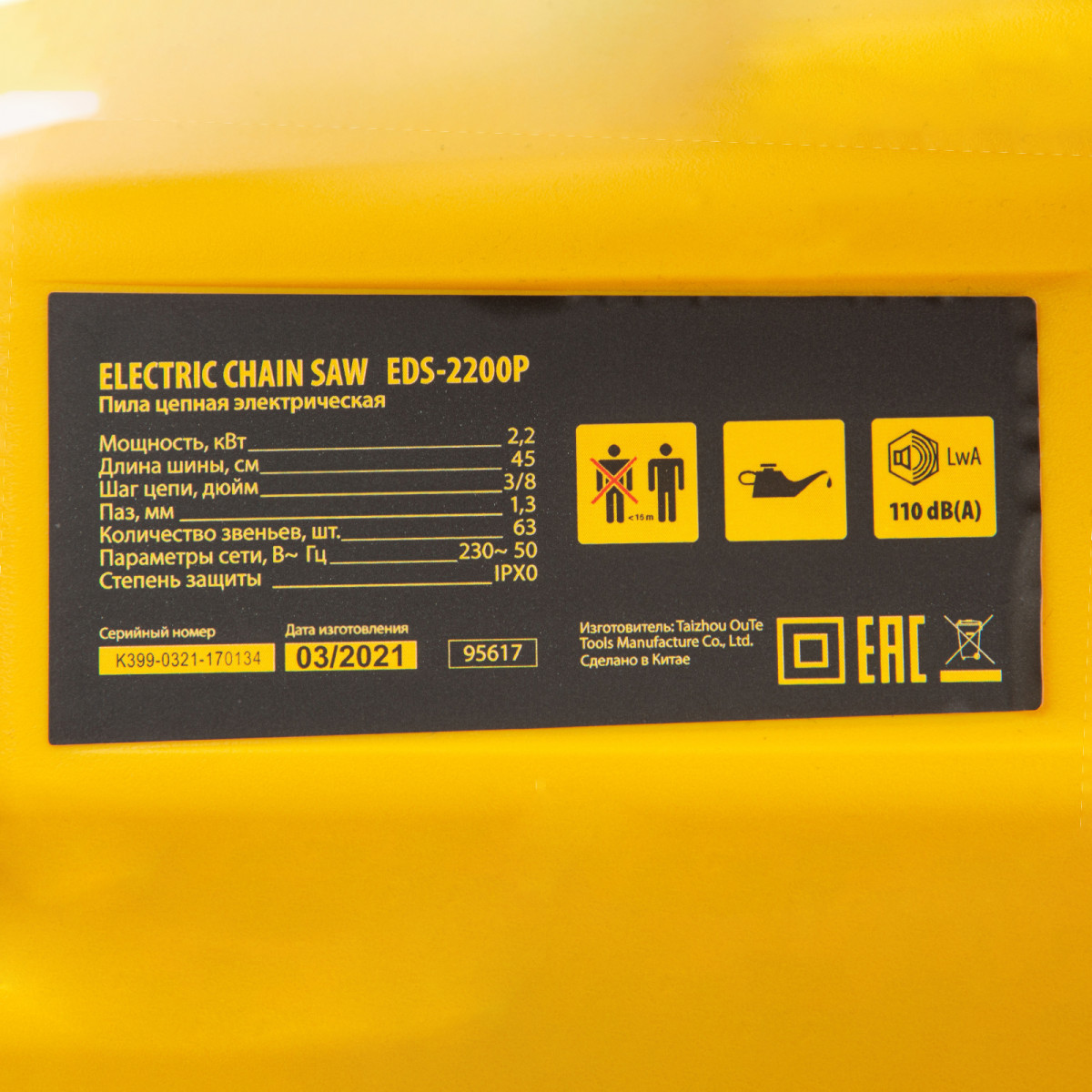 Электрическая цепная пила Denzel EDS-2200P 95617 с поперечным расположением двигателя мощностью 2,2 кВт, совместима с шиной длиной 45 см (шаг 3/8'', паз 1,3 мм) и цепью с 63 звеньями. Предназначена для распила различных пород древесины. Успешно справляется с валкой деревьев, подравниванием ветвей, заготовкой дров, спиливанием веток и т.д. Для работы пилы не требуется приготовление топливной смеси. Благодаря отсутствию вредных выхлопов и неприятного запаха инструмент можно использовать в помещении.