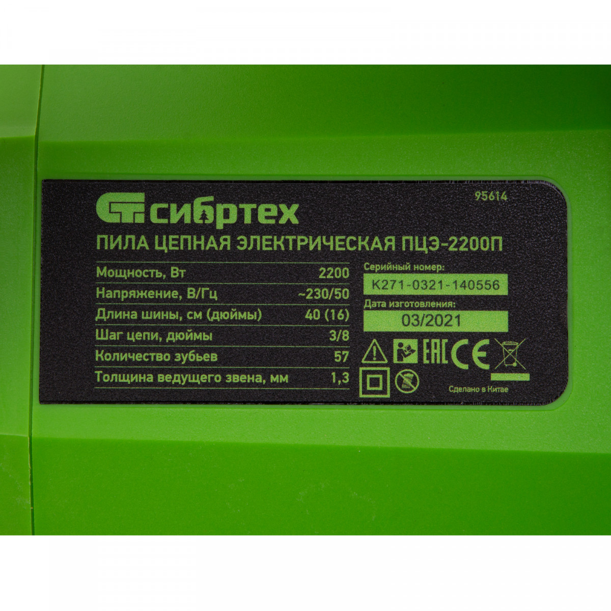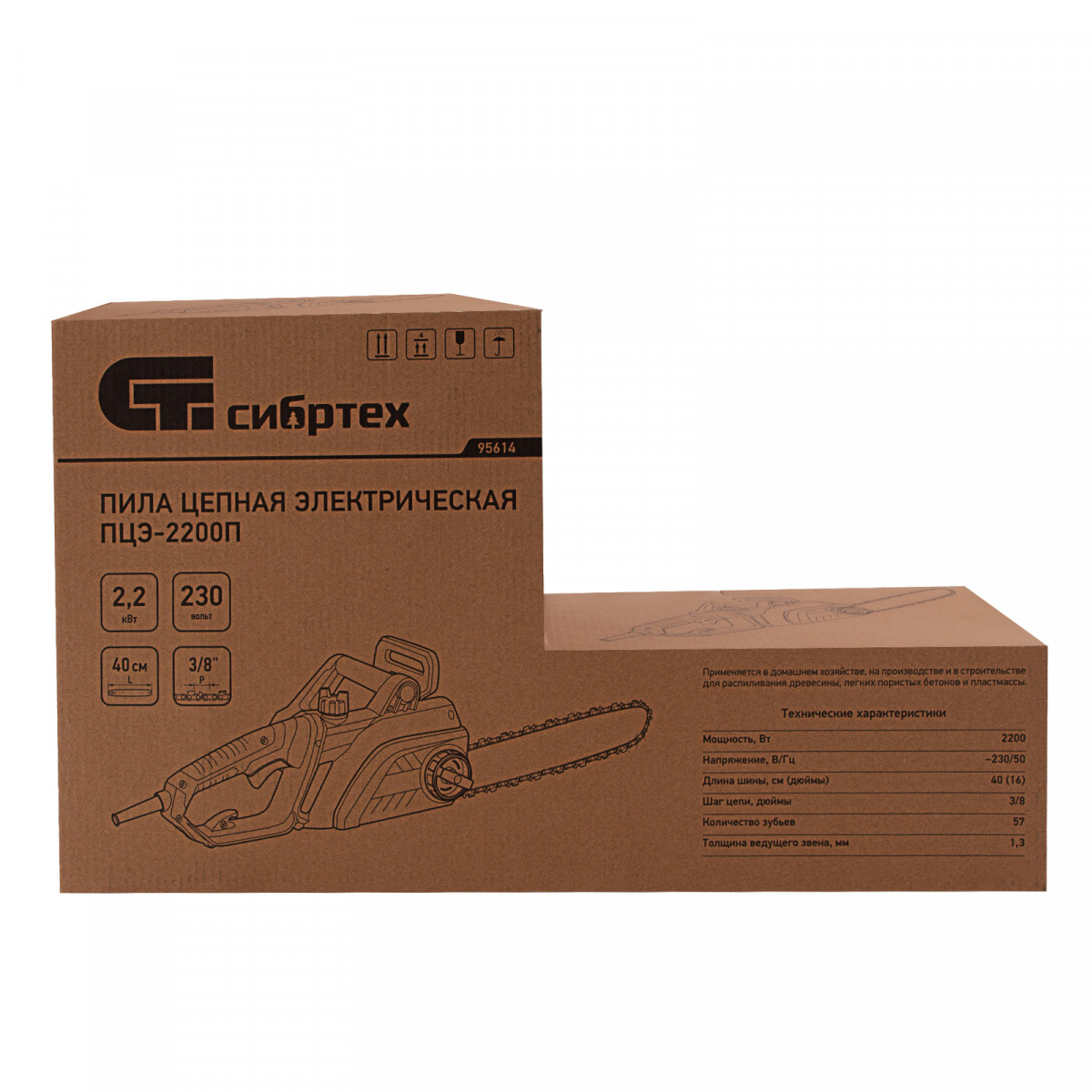 Пила цепная электрическая ПЦЭ-2200П с поперечным двигателем, 2.2 кВт, 16'' (40 см) Сибртех