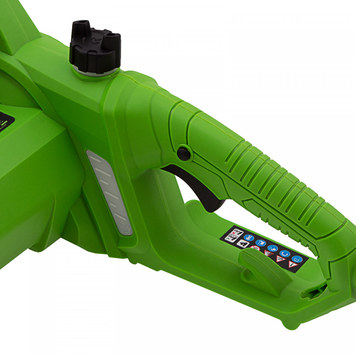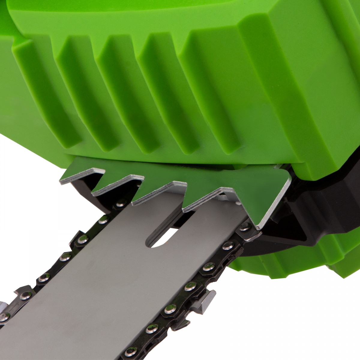 • Бесключевое натяжение цепи — регулировка осуществляется вручную при помощи винта на боковой части корпуса, использование инструментов не требуется.