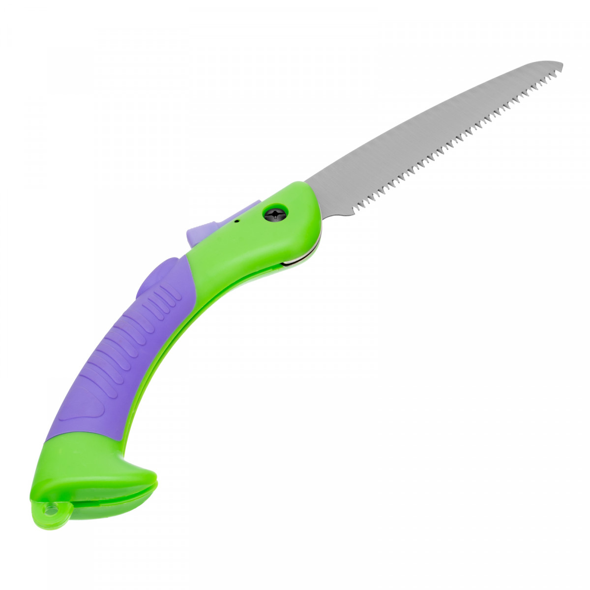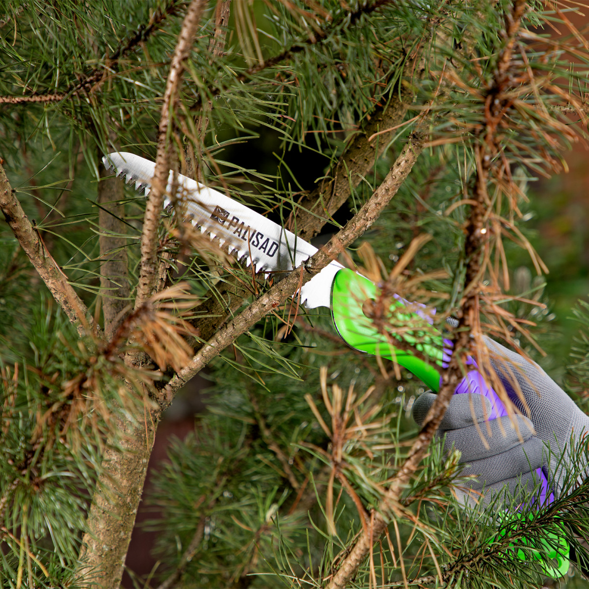 Садовая складная пила Palisad 604145 с рабочей частью длиной 150 мм и пластиковой обрезиненной рукояткой — удобный и компактный инструмент, который будет полезен не только в саду или на строительной площадке, но и в походе. Позволяет обрезать ветки деревьев, выполнять продольный и поперечный рез сухой или сырой древесины. Зубья с трехгранной заточкой обеспечивают эффективную работу при минимальных усилиях со стороны пользователя.