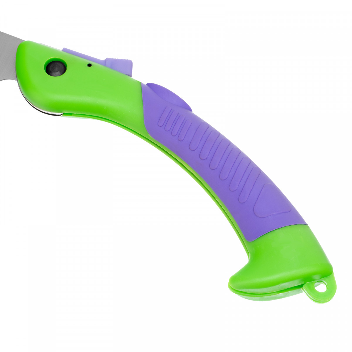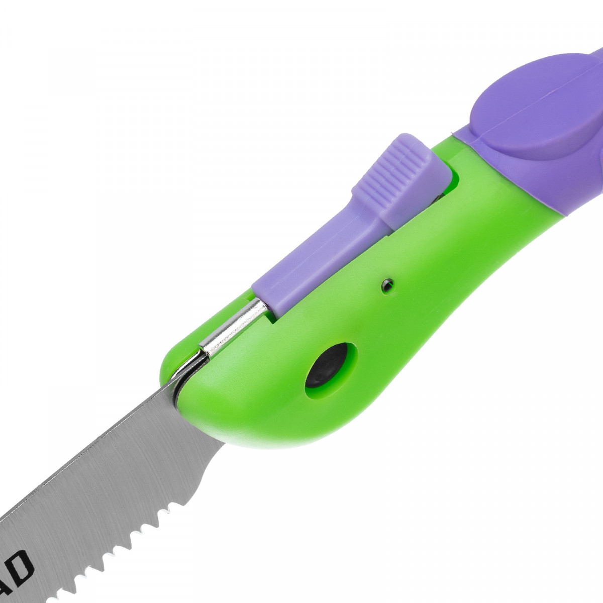 • Безопасное хранение и транспортировка — кнопочный фиксатор надежно удерживает лезвие в сложенном состоянии.