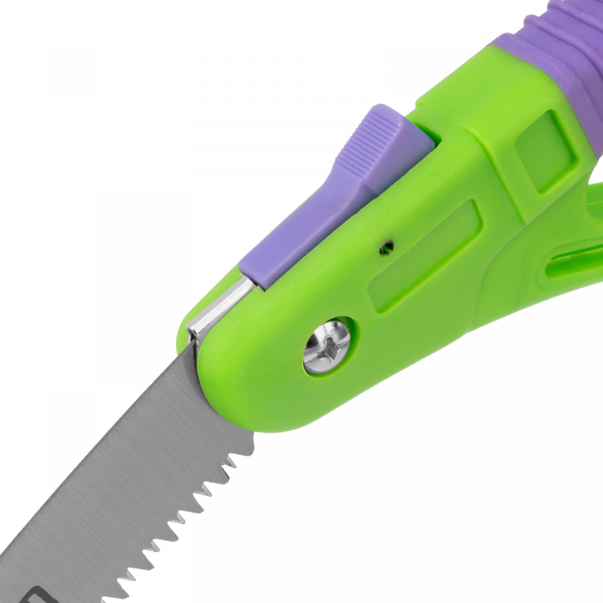 - Надежная конструкция — кнопочный фиксатор удерживает полотно в рабочем или сложенном положении.