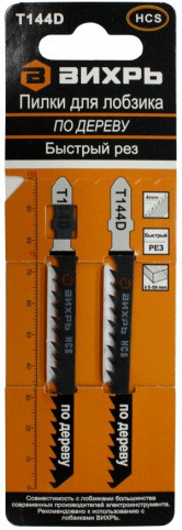 Пилки для лобзика Т144D по дереву,быстрый рез 100х75мм (2шт) Вихрь
