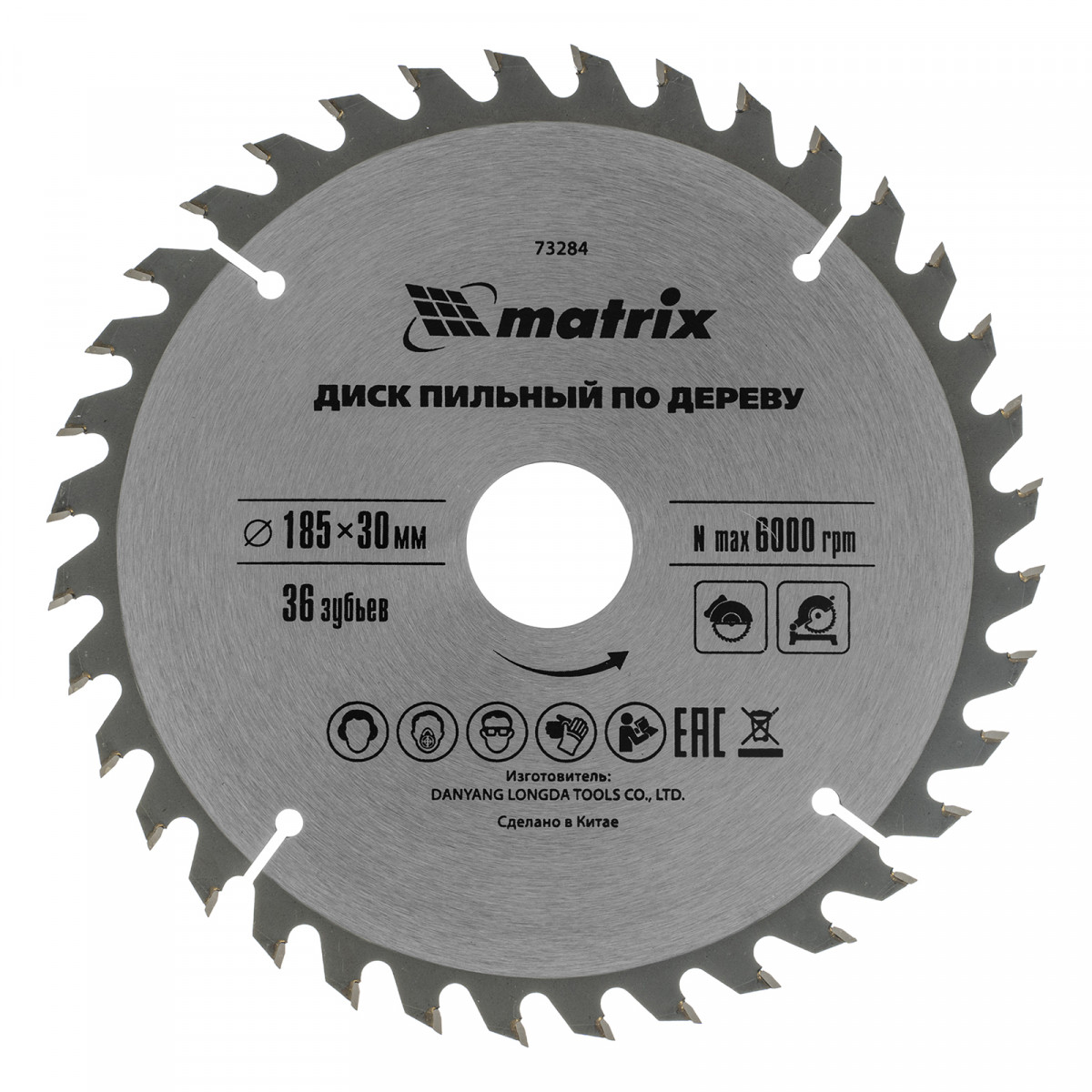 Пильный диск по дереву Matrix 73284 диаметром 185 х 30 мм, с 36 зубьями, — оснастка для циркулярных и торцовочных пил с соответствующим посадочным и внешним диаметром. Используется для продольного/поперечного реза материалов из мягкой и твердой древесины, ДСП, ДВП, фанеры, столярных плит. Диск подходит для бытового и профессионального применения.
