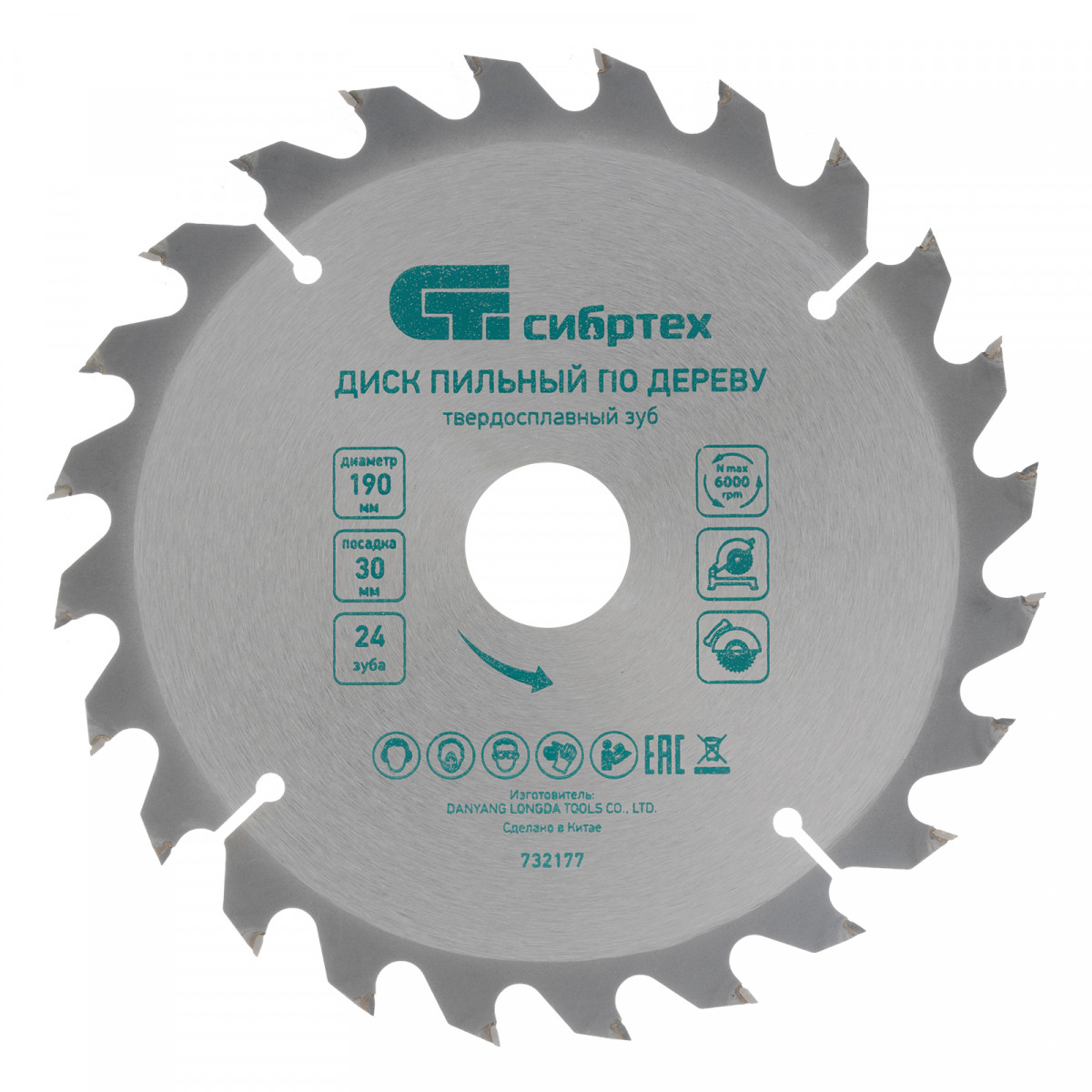 Пильный диск по дереву, 190 х 30 мм, 24 зуба Сибртех