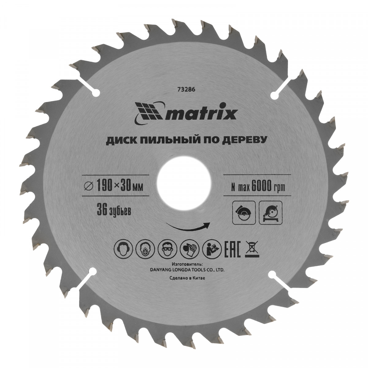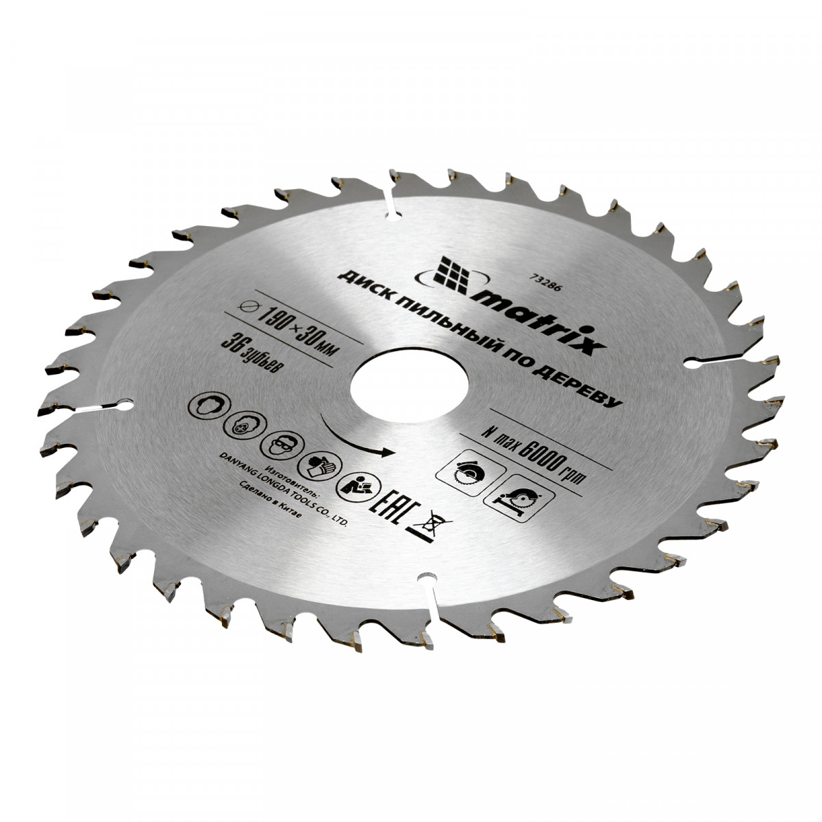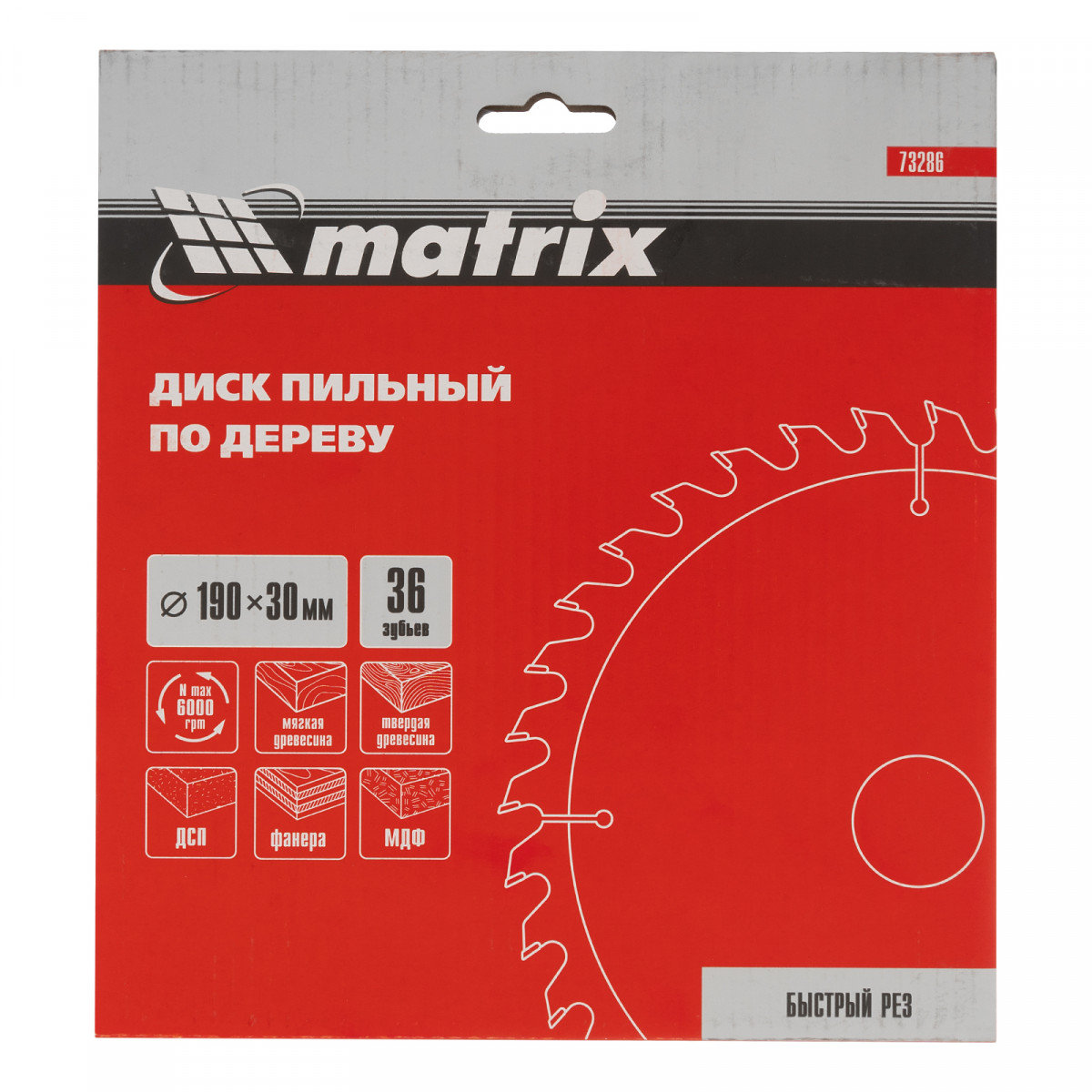 Пильный диск по дереву Matrix 73286 диаметром 190 х 30 мм, с 36 зубьями, — оснастка для циркулярных и торцовочных пил с соответствующим посадочным и внешним диаметром. Используется для продольного/поперечного реза материалов из мягкой и твердой древесины, ДСП, ДВП, фанеры, столярных плит. Диск подходит для бытового и профессионального применения.