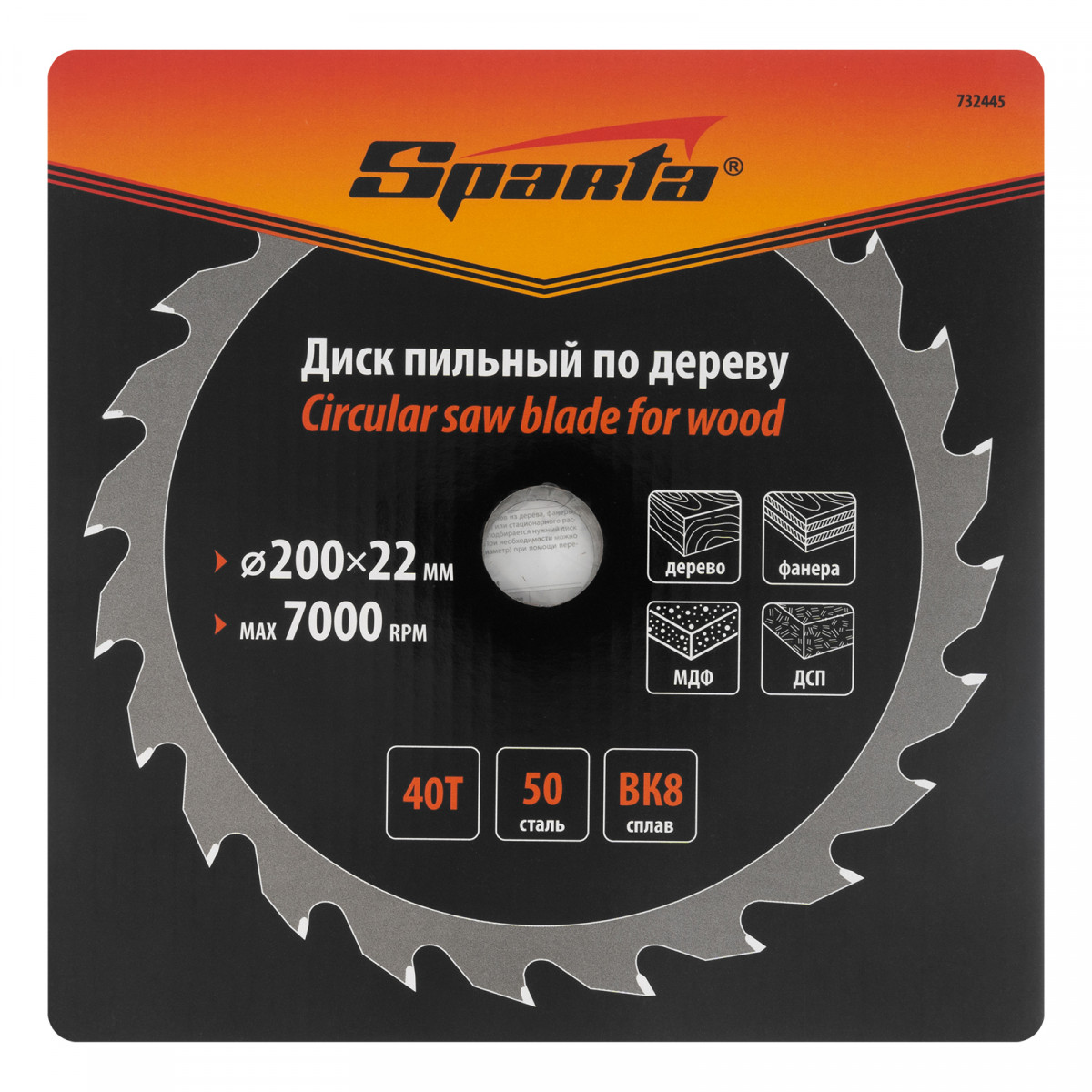 Пильный диск по дереву, 200 х 22 мм, 40 зубьев Sparta