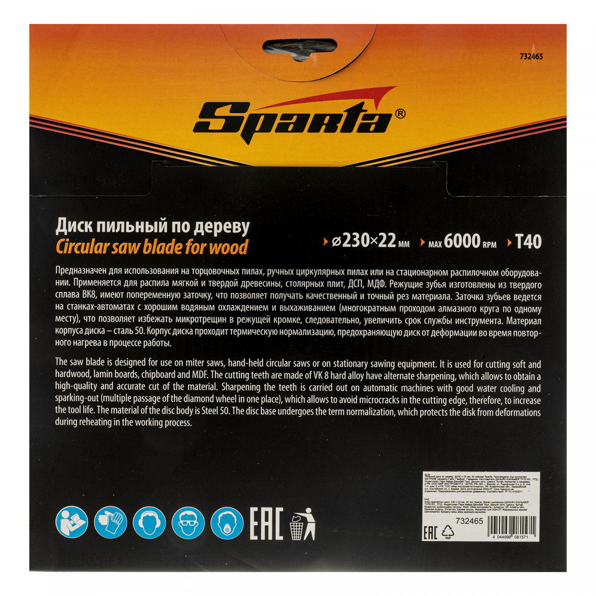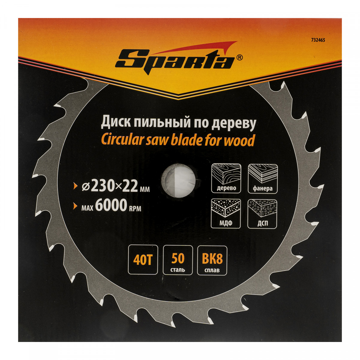 Пильный диск по дереву, 230 х 22 мм, 40 зубьев Sparta
