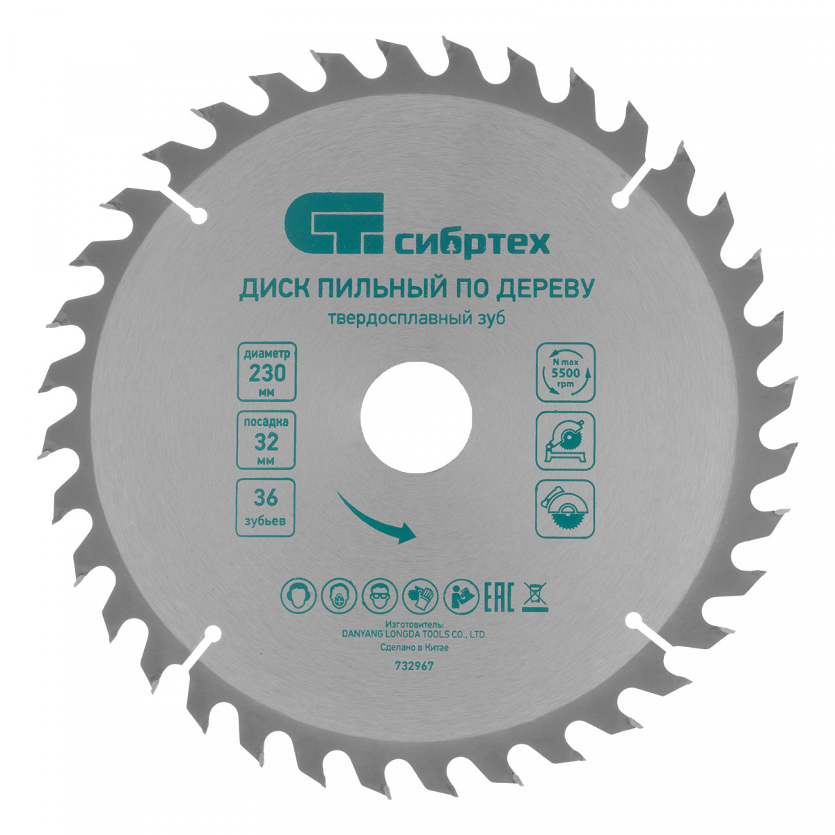 Пильный диск по дереву, 230 х 32 мм, 36 зубьев, кольцо 30/32 Сибртех