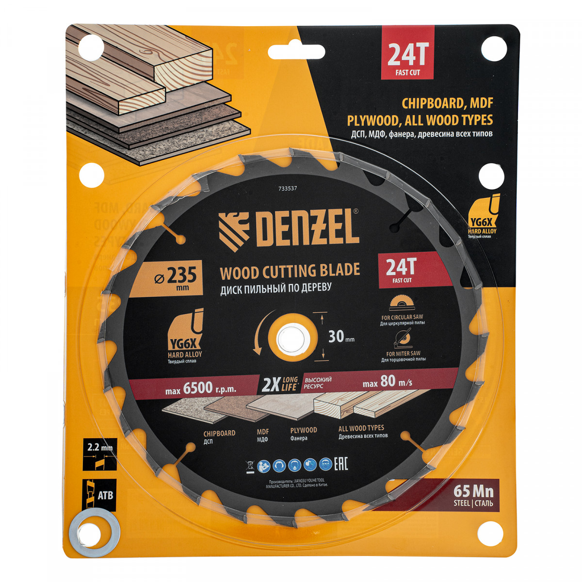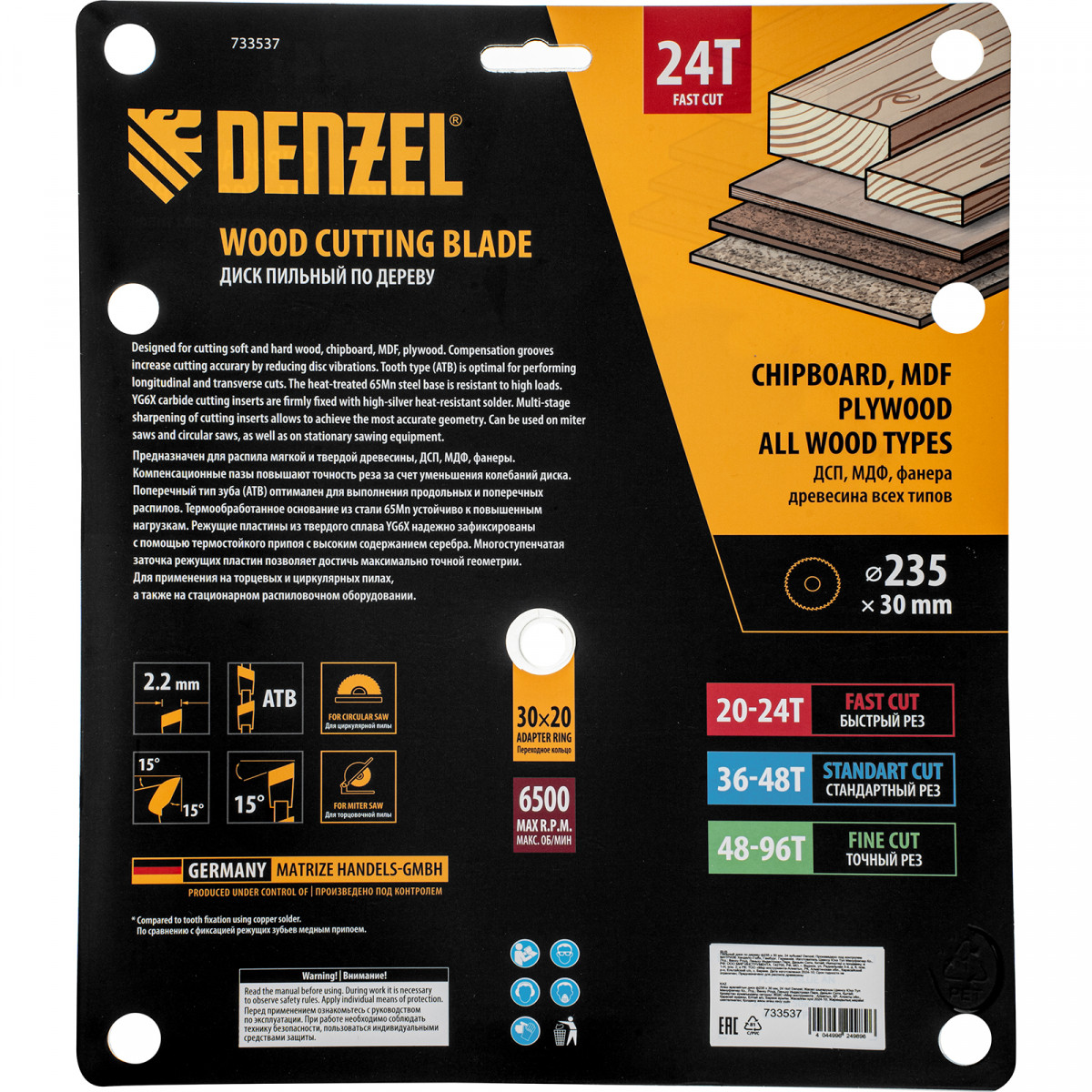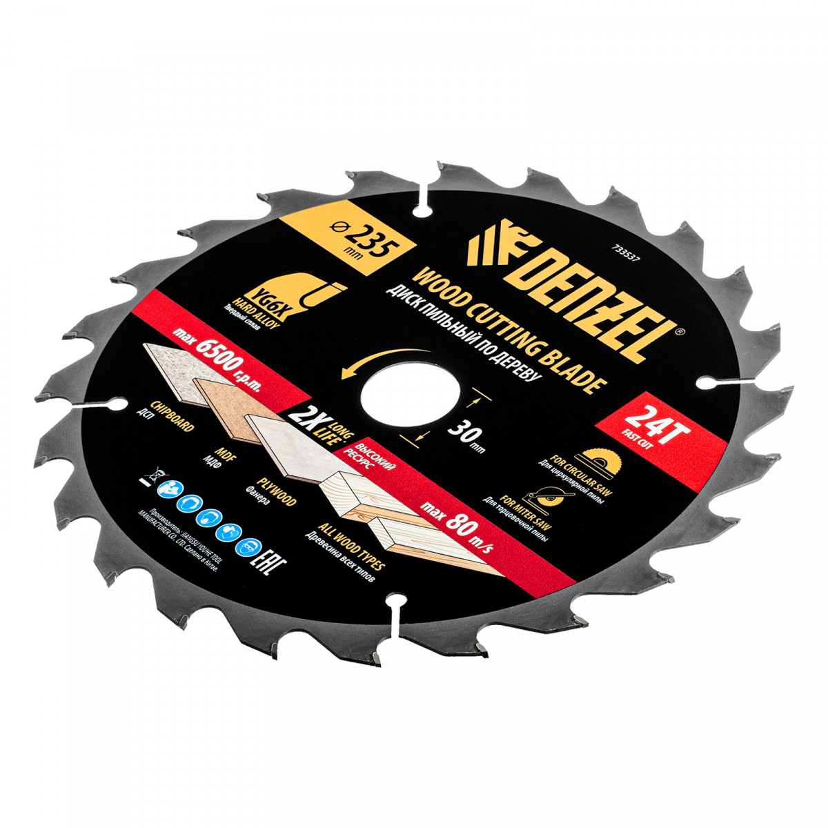 Пильный диск по дереву ф235 х 30 мм, 24 зубьев Denzel