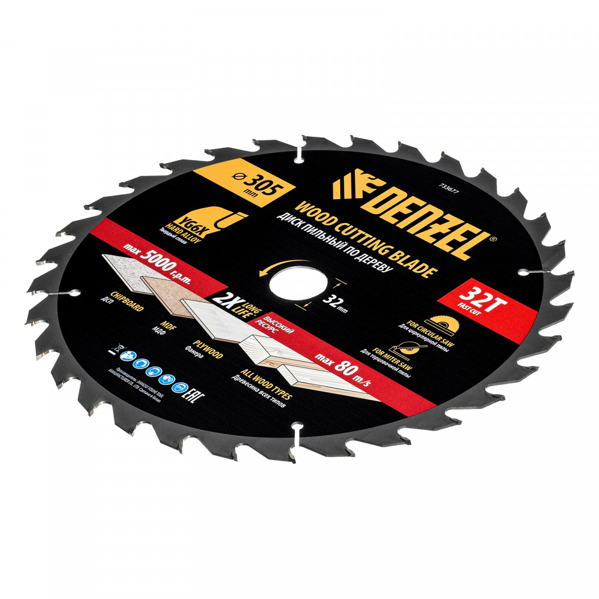 Пильный диск по дереву ф305 х 32 мм, 32 зубьев Denzel