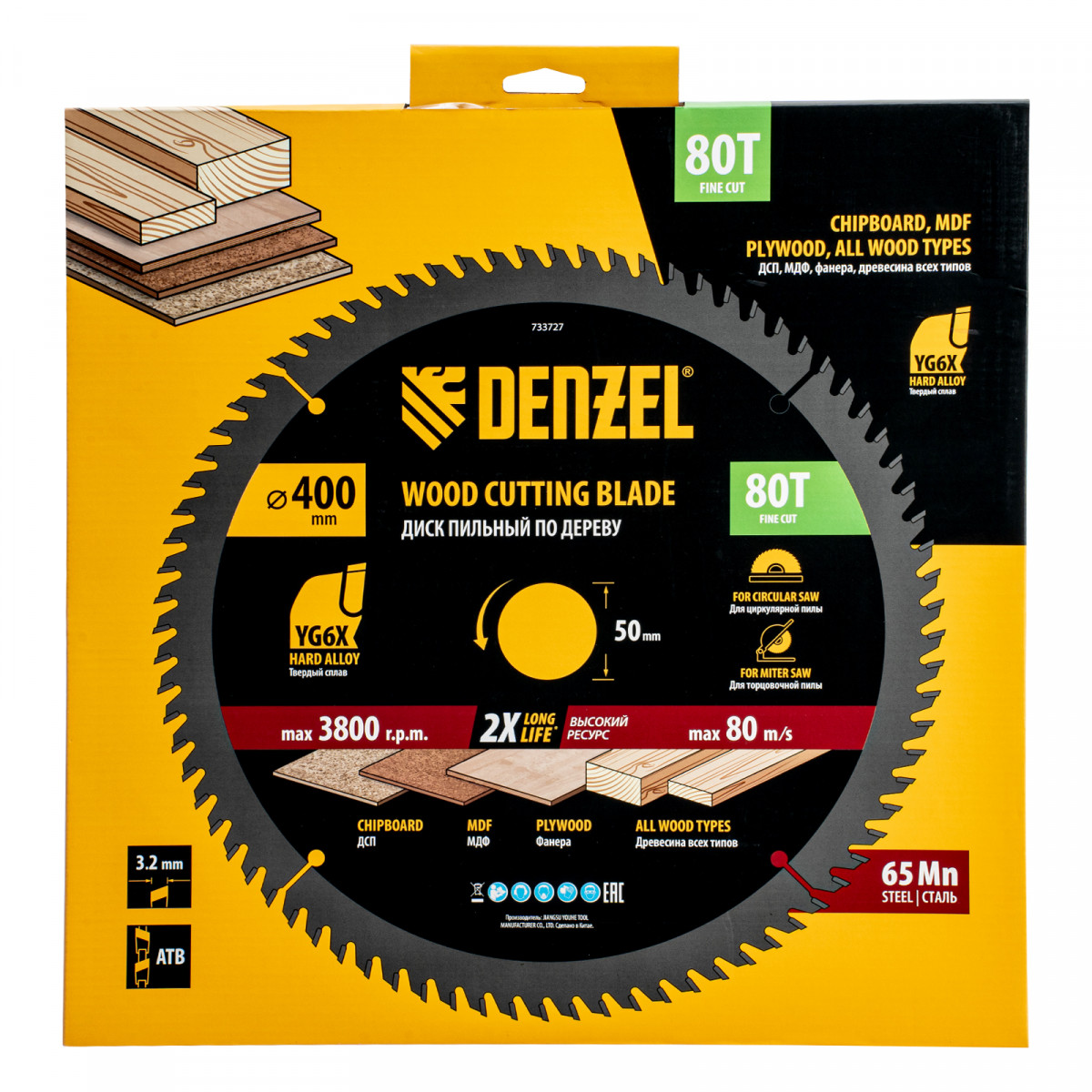 Пильный диск по дереву ф400 х 50 мм, 80 зубьев Denzel