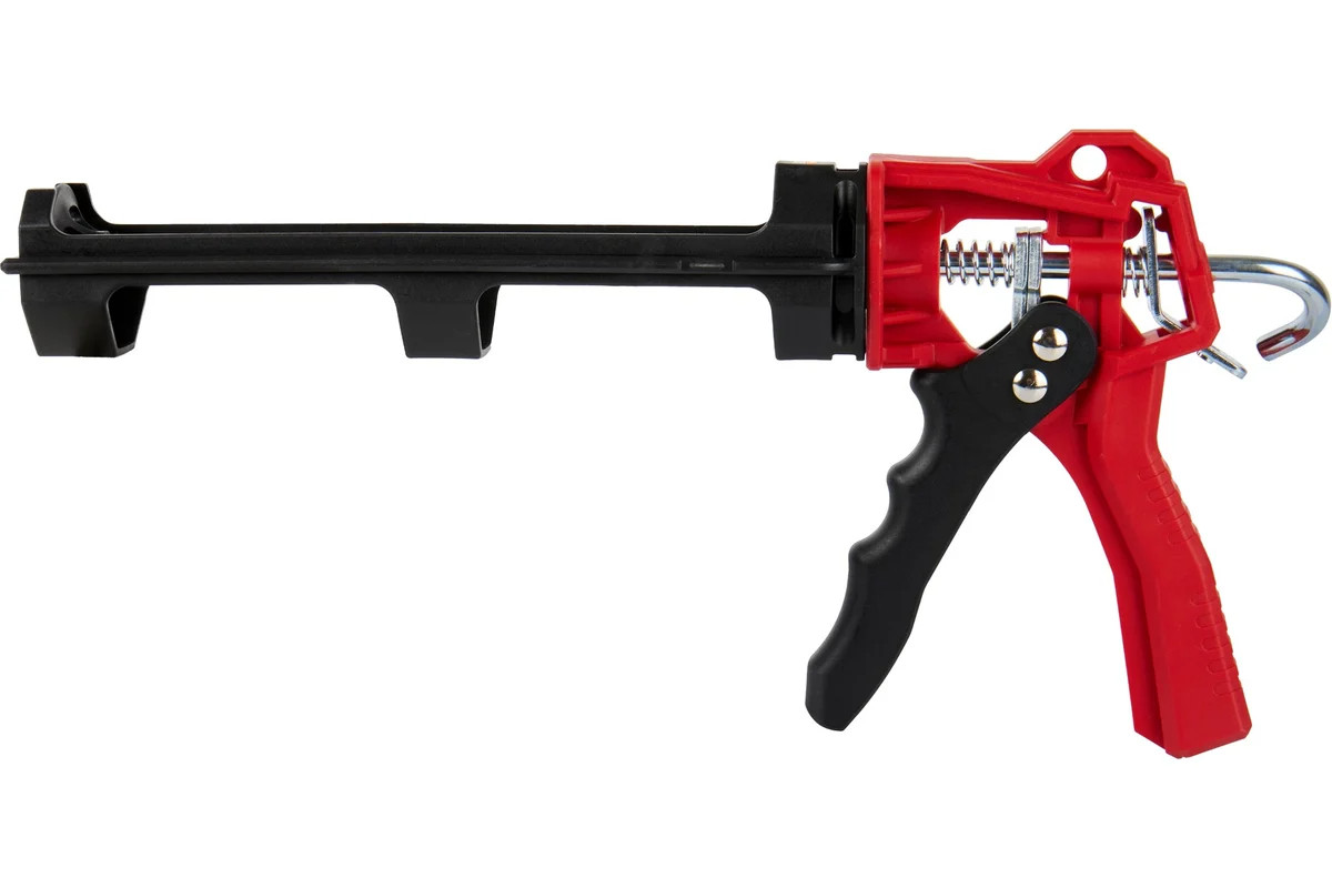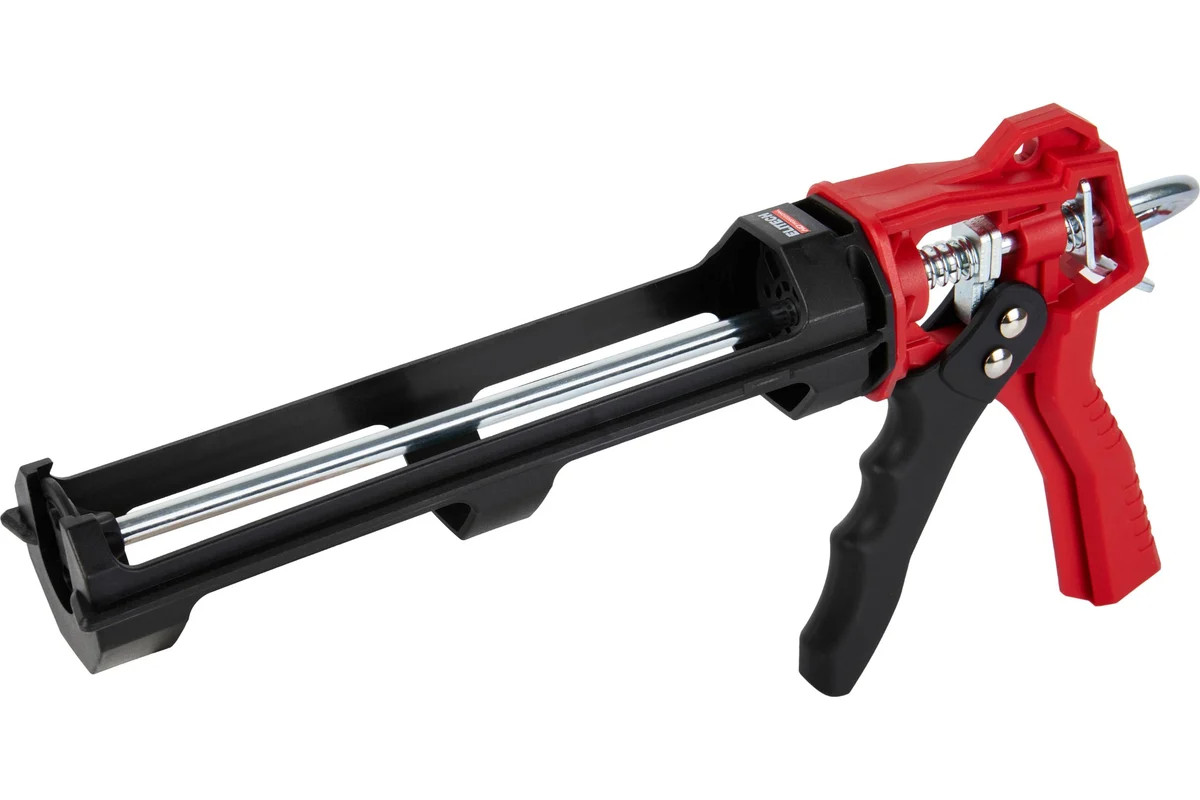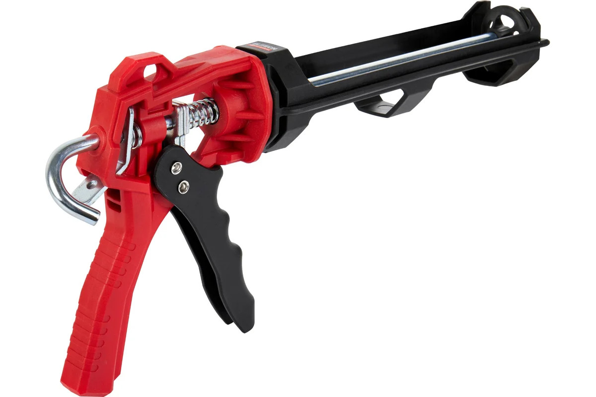 Пистолет с поворотным каркасным держателем и усилием на штоке до 1350 Н (135 кг) используется для выдавливания из тубы герметизирующих или клеящих составов.