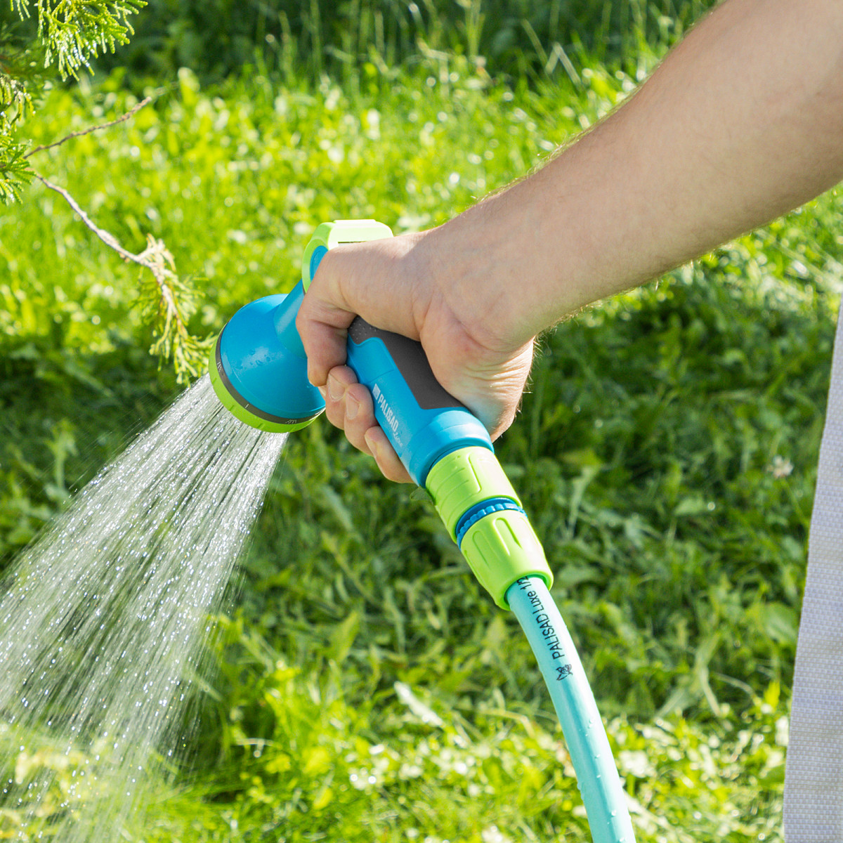 Регулируемый пистолет-распылитель Palisad LUXE 65899 с курком и 8 режимами работы подключается к любым поливочным системам ТМ Palisad и Palisad LUXE для ручного орошения растений на участке, в сквере или парке, а также для мытья дорожек и садовых принадлежностей. 8 режимов распыления позволяют выбрать необходимый тип струи для решения различных задач. Пистолет будет полезен садоводам и сотрудникам коммунальных служб.