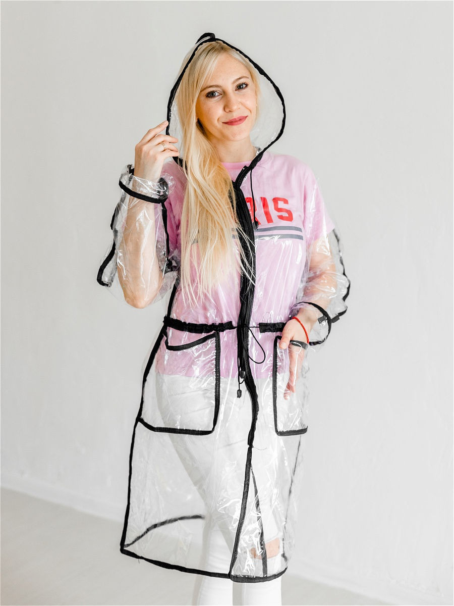 Плащ-дождевик ветро-влагозащитный ПРОЗРАЧНЫЙ, С КАРМАНАМИ+ПОЯС, из морозостойкого материала 120 пл . Цвет в ассортименте.