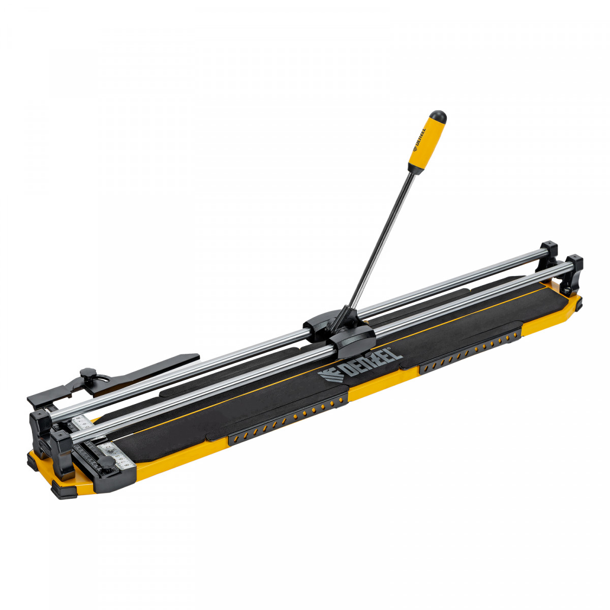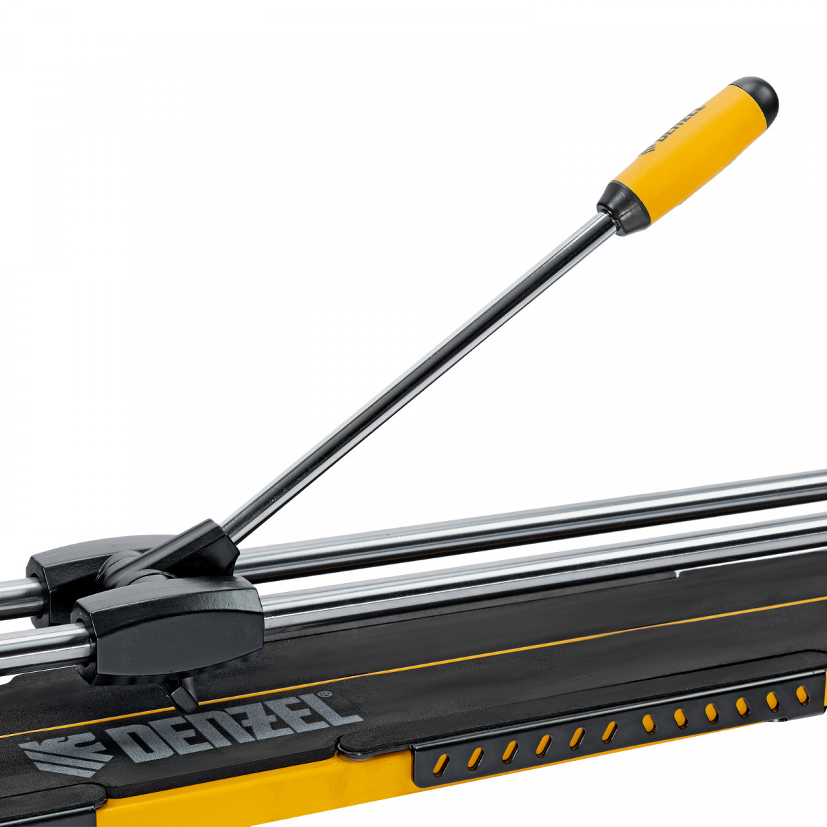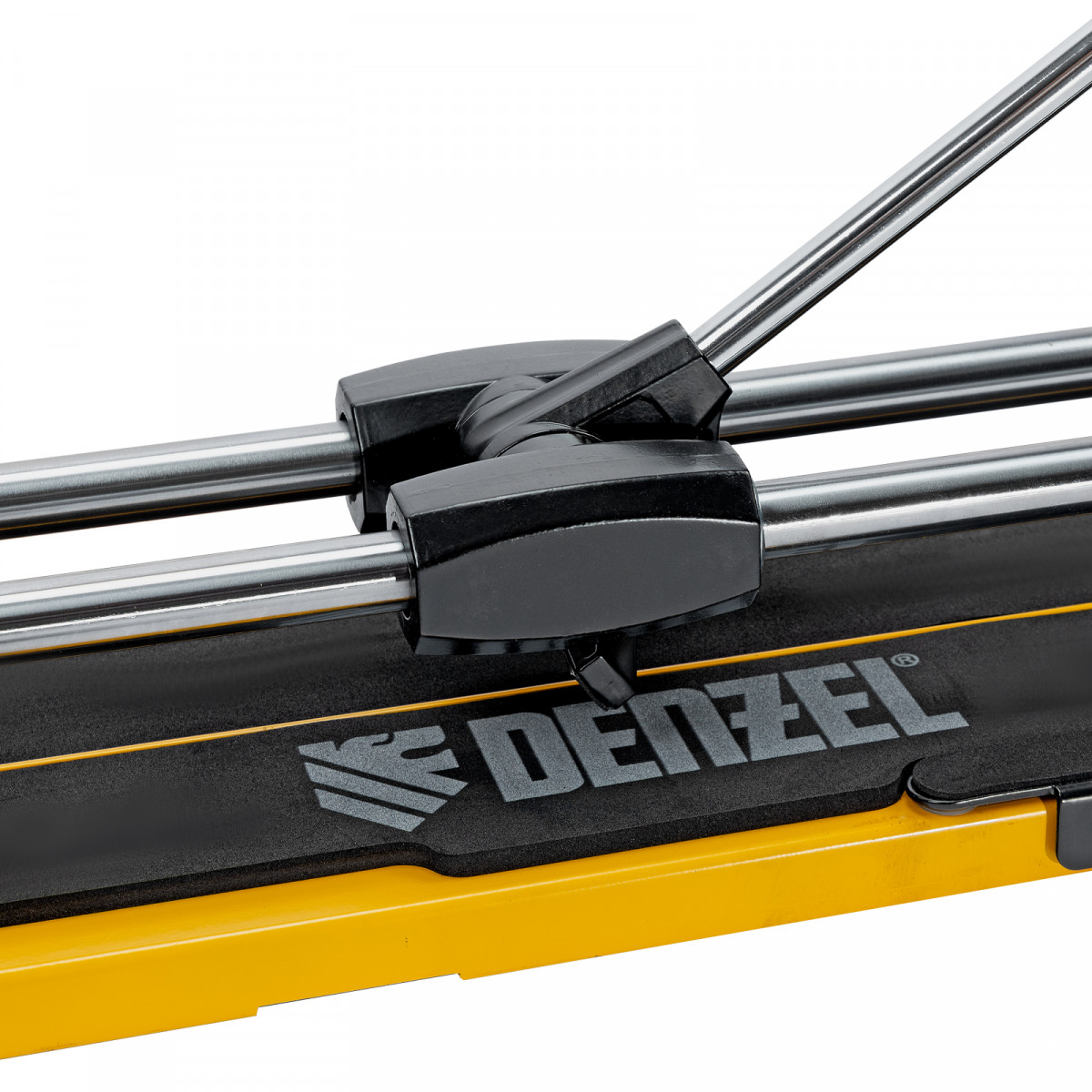 Цельнометаллические направляющие обеспечивают высокую прочность и долгий срок службы плиткореза Denzel.