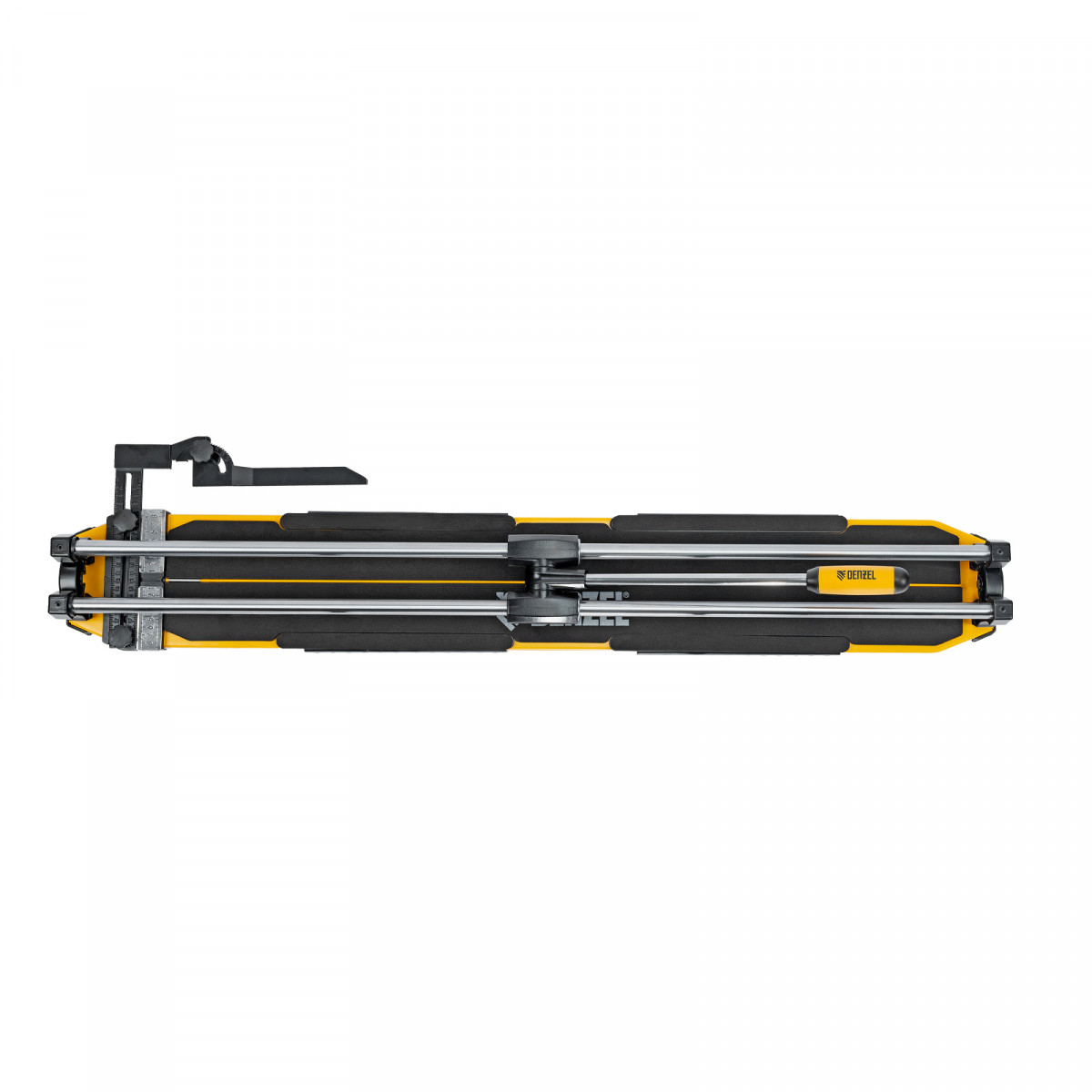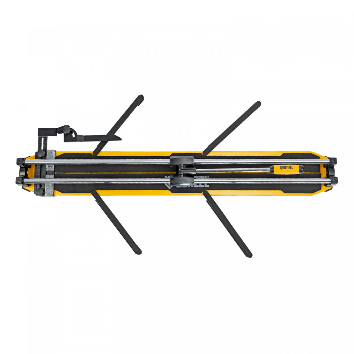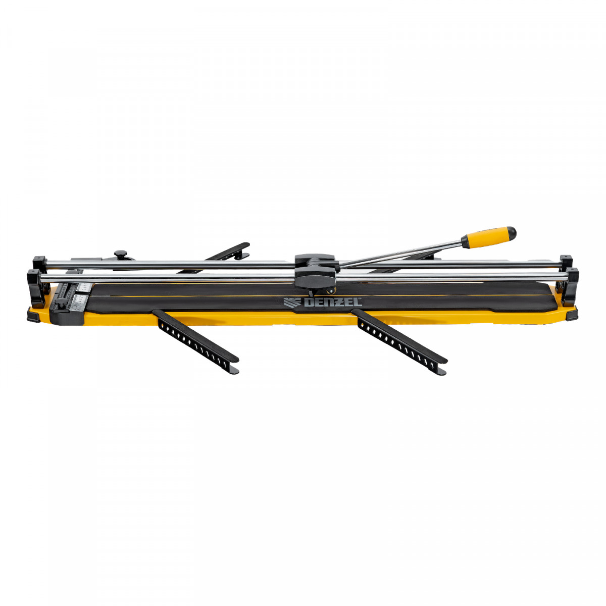 Цельнометаллические направляющие обеспечивают высокую прочность и долгий срок службы плиткореза Denzel.