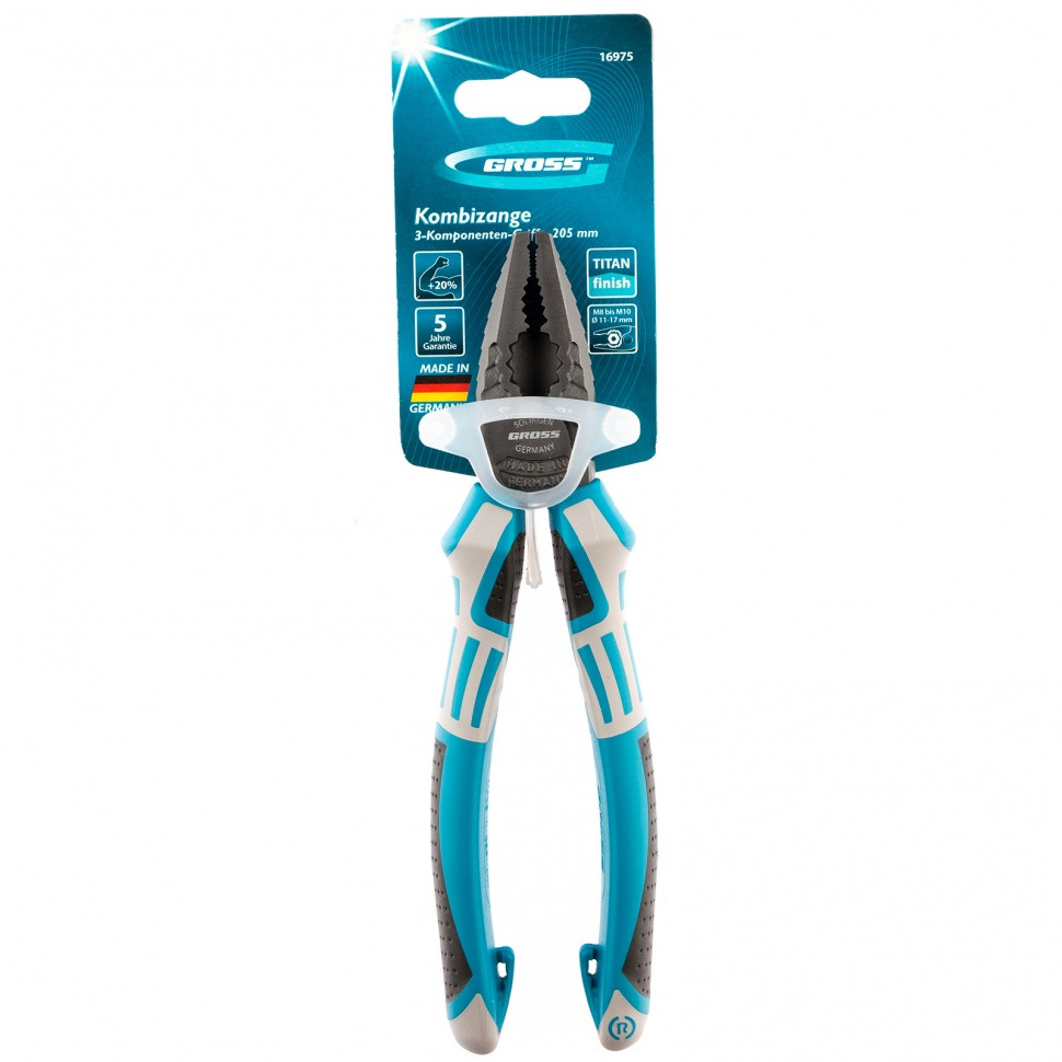 Плоскогубцы комбинированные 205 мм, трехкомпонентные рукоятки Gross