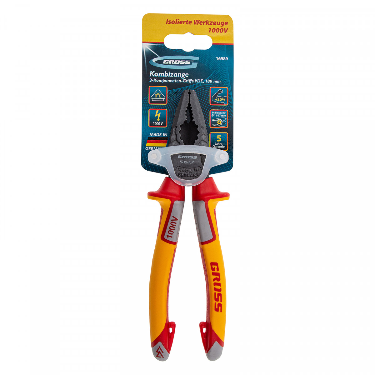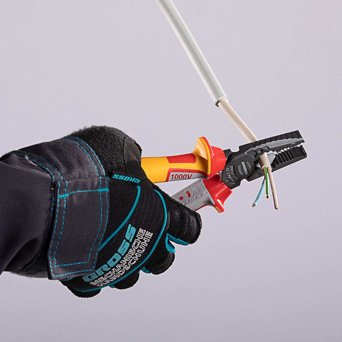 Плоскогубцы комбинированные, диэлектрические трехкомпонентные рукоятки до 1000 В, 180 мм Gross
