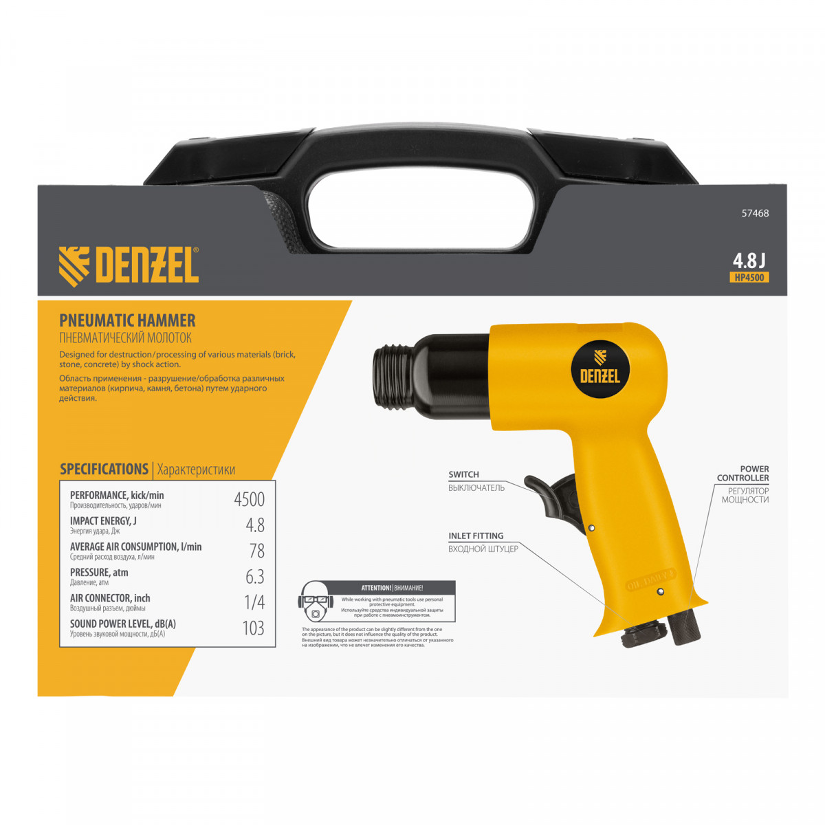 Пневматический молоток НР4500 + набор насадок, 113 л/мин, 4500 уд/мин Denzel
