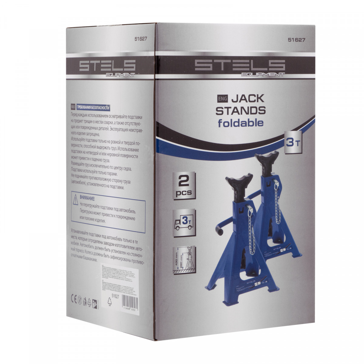 Регулируемые подставки под автомобиль Stels 51627 грузоподъемностью 3 т, с высотой подъема 295-425 мм, 2 шт. в комплекте, используются в качестве дополнительной поддержки во время ремонта автотранспорта. Подставки удерживают автомобиль на необходимой высоте при помощи регулируемых штоков с зубчатым механизмом фиксации. Каждая стойка снабжена страховочным штифтом, что исключает риск случайного опускания штока. Подставки будут полезны для профессионального и самостоятельного авторемонта.
