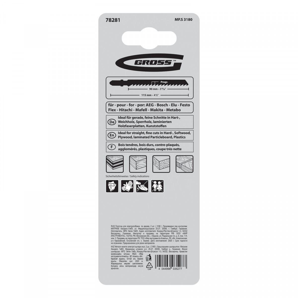 Полотна для электролобзика по дереву, 2 шт, ( 3180 ) Gross