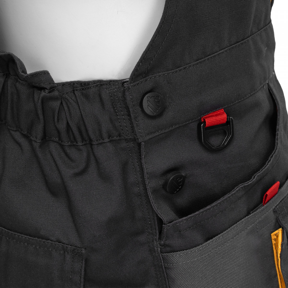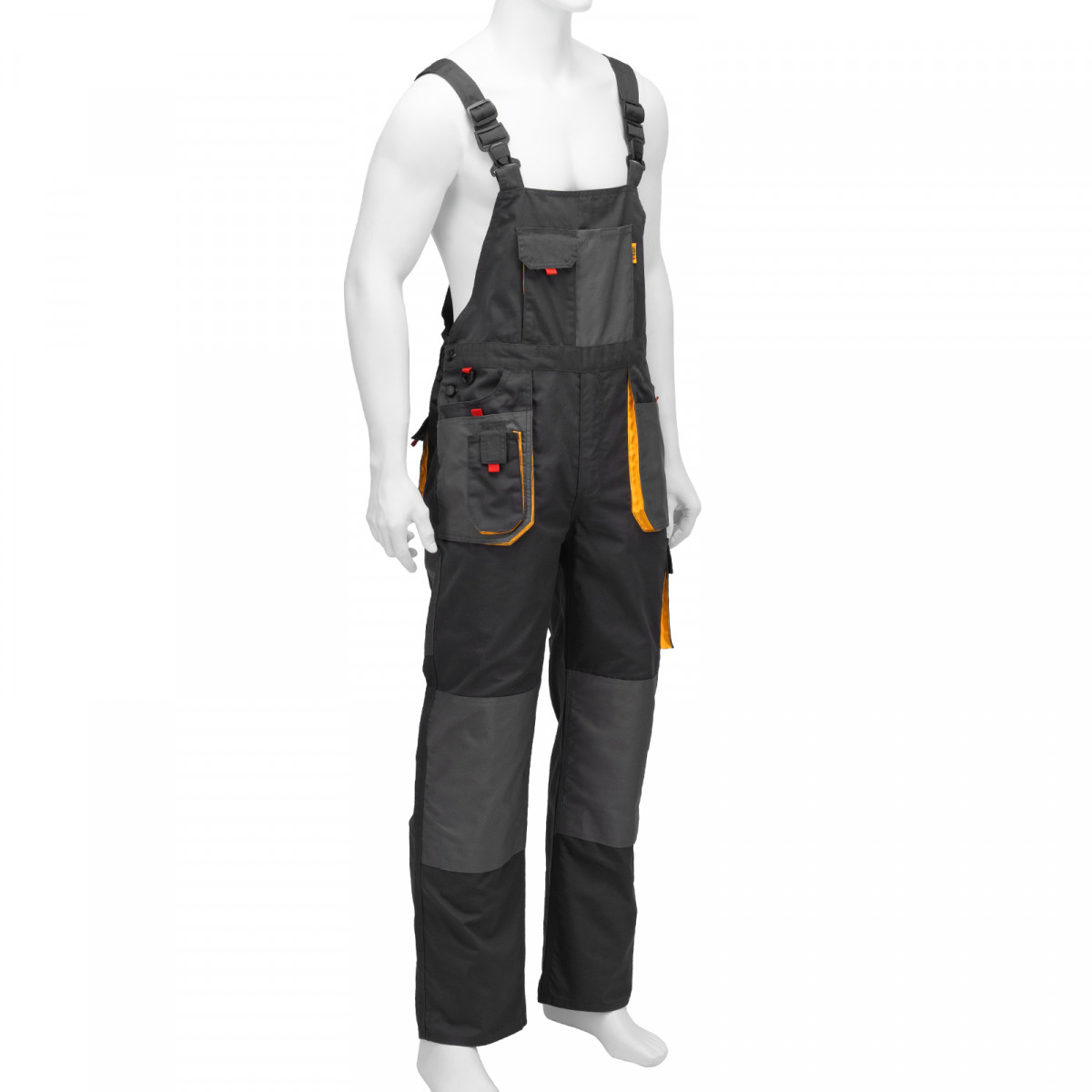 - Большое количество карманов — полукомбинезон снабжен специальными отделениями для инструментов, а в карманах с «липучками» можно разместить мобильный телефон, крепеж и необходимые мелочи.