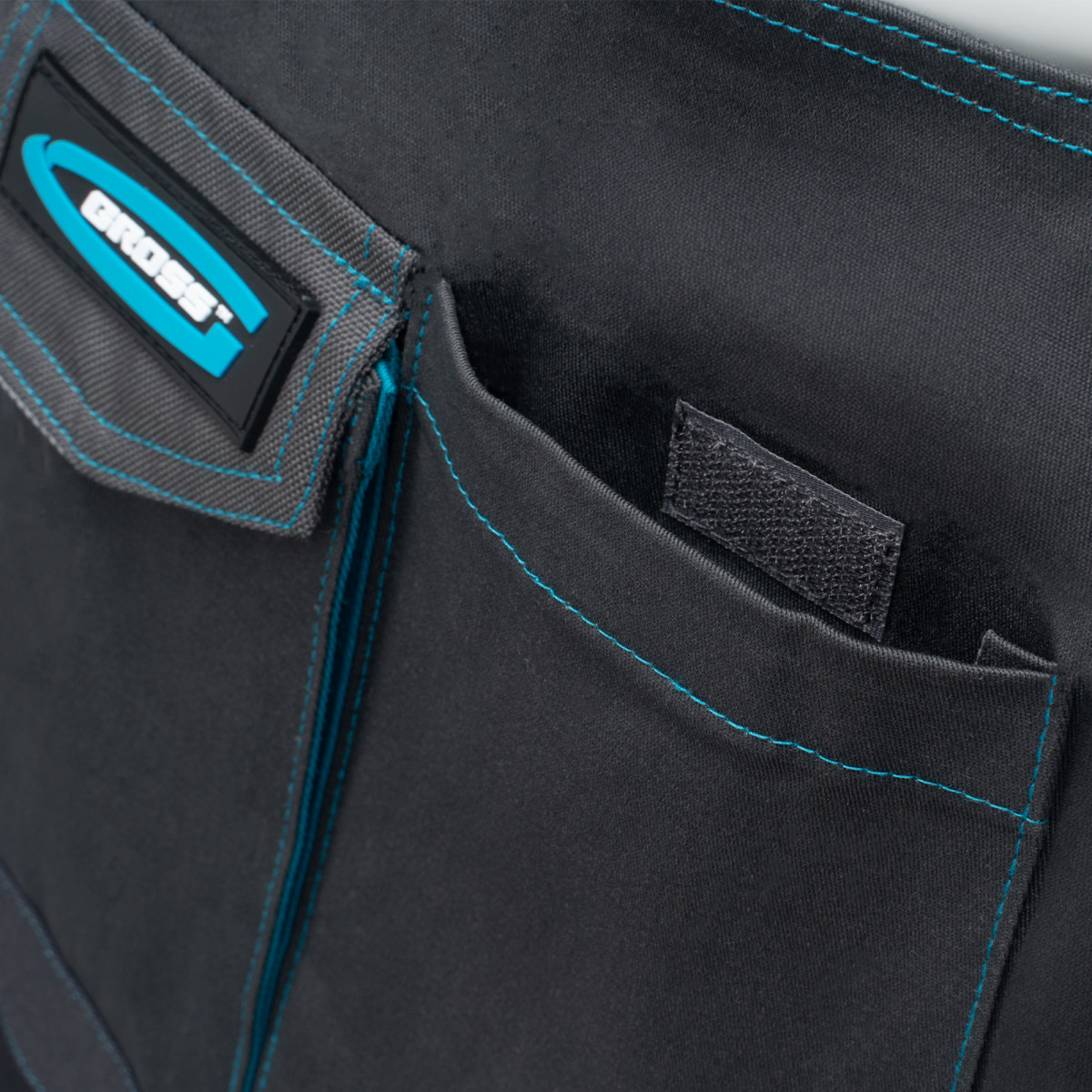 - Карманы на липучках — мобильный телефон, крепеж и прочие мелочи не выпадут во время работы.
