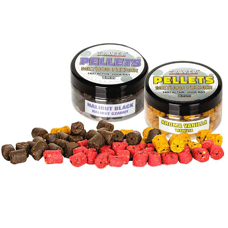 Traper Pellets Fast Action Method Feeder - гранулы, представляющие собой насадки с высверленным отверстием. В основе изготовления лежат только натуральные и хорошо подобранные ингредиенты, обладающие высокой степенью ароматики и привлекательности для рыбы. Благодаря тщательно подобранным компонентам, гранулы имеют минимальную ломкость, сохраняя свою форму длительное время даже после длительного пребывания в воде, что позволяет использовать приманку длительное время. Попадая в воду, аттрактанты насадки немедленно высвобождаются, обеспечивая стабильно стойкий и и продолжительный эффект.