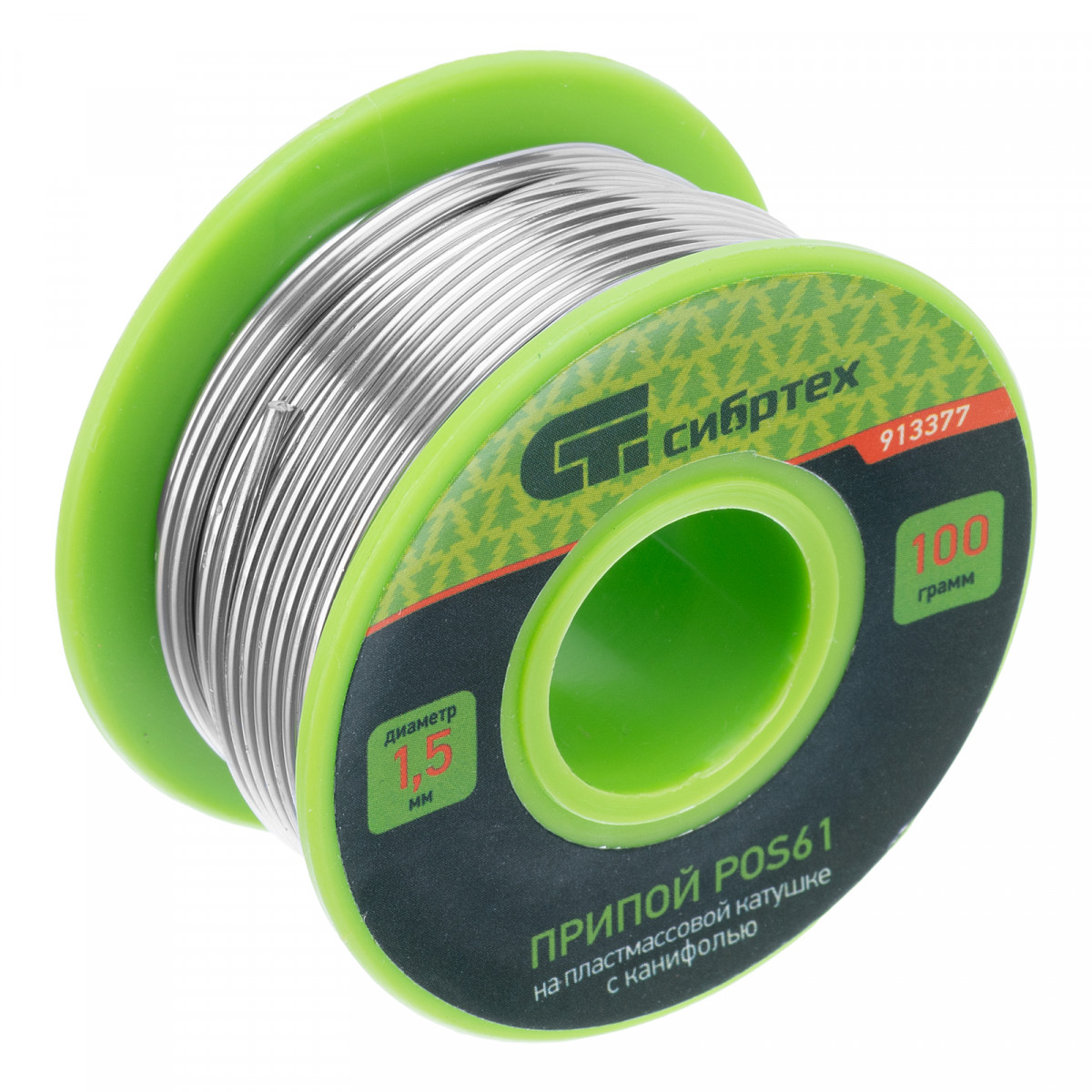 Припой с канифолью, D 1.5 мм, 100 г, POS61, на пластмассовой катушке Сибртех