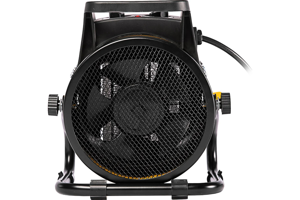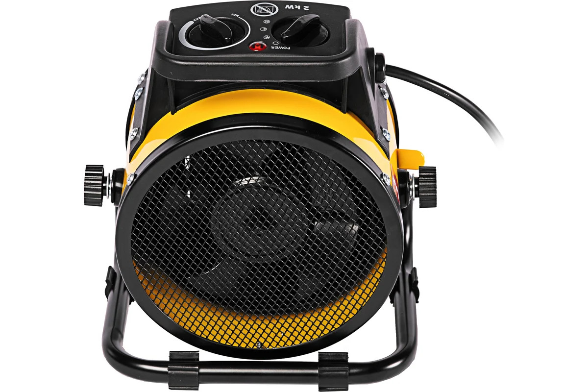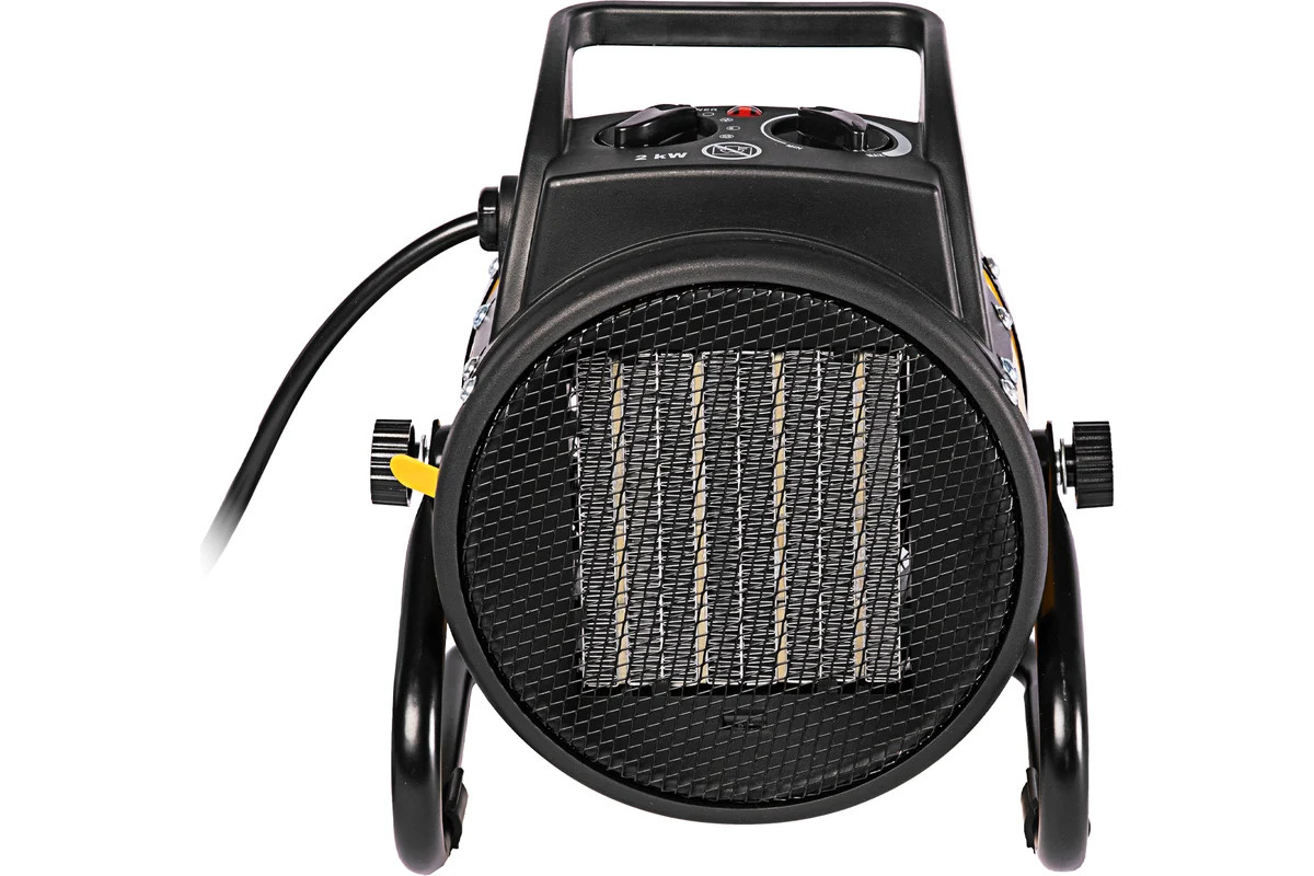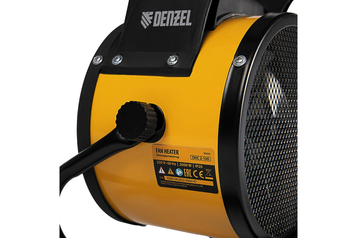 Тепловая пушка (тепловентилятор) Denzel DHC 2-100 96429 с керамическим нагревателем потребляет мощность 0,025, 1 или 2 кВт и пригодится в любую погоду: в холод она обогреет помещение, а в жару ее можно использовать как вентилятор. Также применяется во время отделочных работ для просушки поверхностей — окрашенных и оштукатуренных стен, стяжек. Максимальной мощности 2 кВт хватит для обогрева помещения площадью до 20 кв.м. Работа тепловой пушки не доставляет дискомфорт, безопасна для здоровья людей и животных, поскольку керамический нагревательный элемент не сушит воздух и не выделяет вредных веществ.