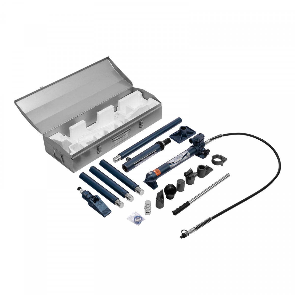Растяжка гидравлическая, 10 т, набор из 17 предметов, 7 сменных насадок, в металлическом кейсе Stels