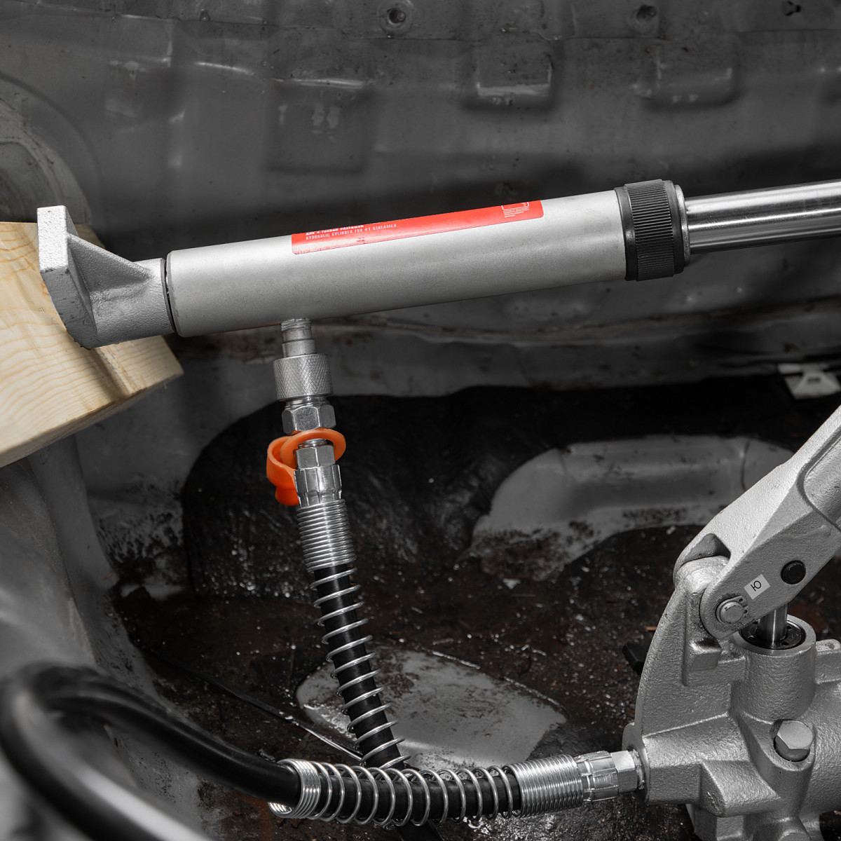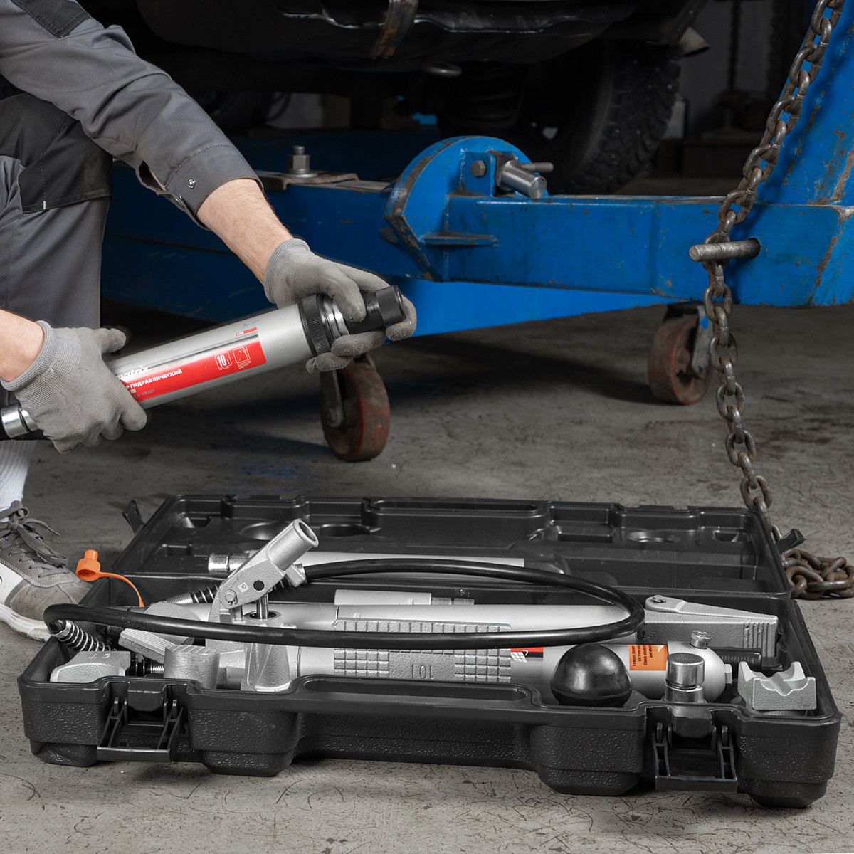 Гидравлическая растяжка Matrix 513405, рассчитанная на усилие до 10 т, входит в набор из 17 предметов — гидронасоса, цилиндра, удлинителя, опорной площадки, адаптера и 7 сменных насадок в пластиковом кейсе. Используется для восстановления геометрии металлических изделий. Можно выбрать оптимальную насадку в зависимости от марки автомобиля, а также области и степени повреждения. Растяжка будет полезна для выполнения кузовных работ и рихтовки металлоконструкций.