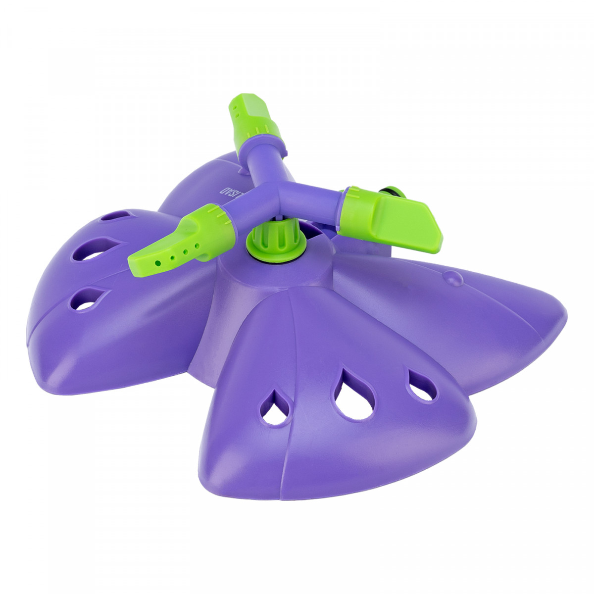 Вращающийся разбрызгиватель Palisad «Бабочка» 65401 с 3 лопастями, с регулировкой, используется для орошения газонов и садовых участков. Максимальная площадь полива составляет 58 кв.м. Дальность распыления можно варьировать от 2 до 4,3 м. На каждой лопасти 4 отверстия, обеспечивающие равномерный полив. Основание выполнено в форме бабочки, что придает устройству оригинальный вид.