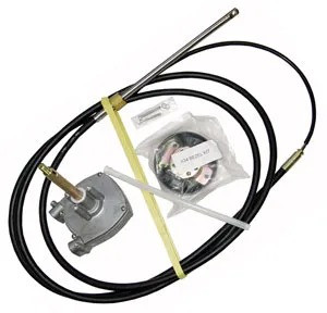 В набор дистанции на лодочный мотор входит рулевой редуктор модели Т71, оснащённый планетарной передачей с возможностью полной перекладки руля за 3 1/2 оборота, рулевой трос c шагом длины 30,5 см и необходимые крепёжные элементы. Длина рулевого троса определяется как длина рубашки плюс 56 см. Минимальный радиус изгиба троса 200 мм. Руль для лодки в комплект поставки не входит и приобретается дополнительно.