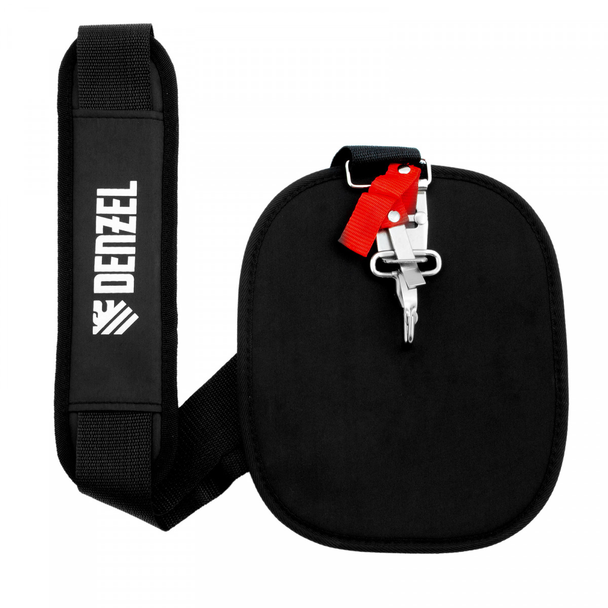 Универсальный ремень Denzel 96368 с защитой бедра предназначен для облегчения работы с триммерами. Он подвешивается на плечо, позволяя снизить нагрузку на руки, что удобно для выполнения работ средней продолжительности.