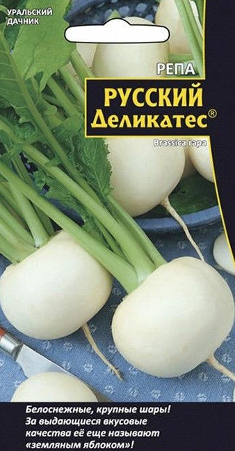 Скороспелый сорт салатной репы отечественной селекции. Корнеплод округлый, белый, диаметром 10-12 см. Мякоть белая, вкусная, нежная, сладкая, сочная, без горечи. За выдающиеся вкусовые качества её ещё называют "земляным яблоком". Рекомендуется для употребления в свежем, жареном, печёном, тушёном или фаршированном виде. Сорт отличается высокой урожайностью (до 4,5 кг/м2), хорошей лёжкостью и товарностью корнеплодов.